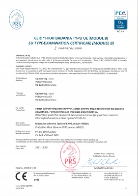 Средства индивидуальной защиты подтверждены аккредитованными испытаниями SGS и сертификатом европейского уполномоченного органа.