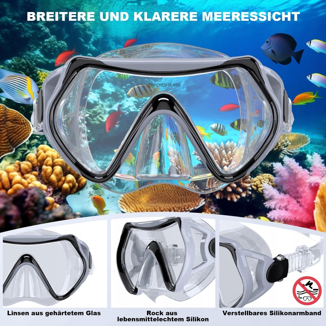 Панорамный обзор на 180° в нашем наборе для подводного плавания — это то, что меняет правила игры. Представьте, что вы можете без ограничений любоваться коралловыми рифами, косяками рыб и подводными пейзажами – и все это благодаря маске из закаленного стекла и силикона. Что выделяет его, так это отсутствие боковых «слепых зон», которые часто портят удовольствие от стандартных масок. Вы сможете свободно поворачивать голову, и каждая деталь подводного мира будет у вас под рукой. Как это работает? Три линзы — центральная и боковая — создают плавное, широкое изображение, создающее ощущение, будто вы плывете в аквариуме. Почему это важно? Потому что подводное плавание – это не просто плавание, это исследование! С таким видом вы не упустите ни одной детали, а каждая ваша поездка станет незабываемым приключением. Идеально подходит для начинающих и опытных пользователей — просто наденьте маску и позвольте себе погрузиться в подводное волшебство!