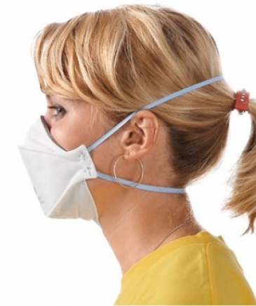 - Повязка плотно прилегает полумаску к лицу, цветная лента определяет класс защиты - синяя: FFP2 в соответствии с EN 149:2001+A1: Стандарт 2009 года.