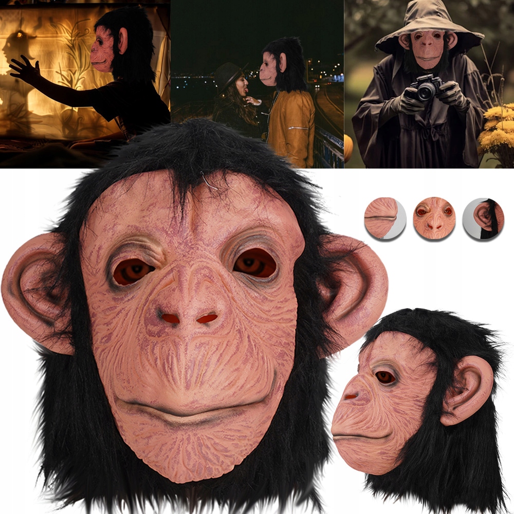 🎃🎃 ПОДРОБНО И В РЕАЛЬНОМ ОТНОШЕНИИ: Толстый резиновый латекс, не беспокойтесь, деформируется после многократного использования. Насыщенный цвет, латексная текстура, как у настоящей, и примерно такого же размера, как голова настоящей гориллы-шимпанзе. Деликатная работа: черный мех из микрофибры, реалистичное ухо. Куда бы вы ни взяли с собой эту классную маску шимпанзе, вы обязательно привлечете к себе внимание.