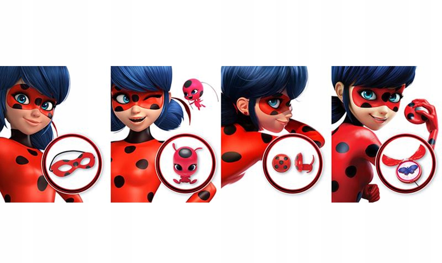 - В набор входят: маска супергероя, йо-йо с волшебной бабочкой Акума, клипсы со знаком божьей коровки, помощник Квами Тикки