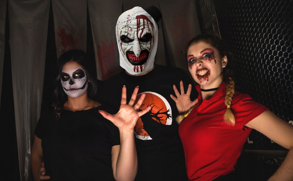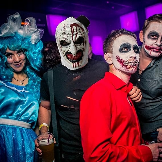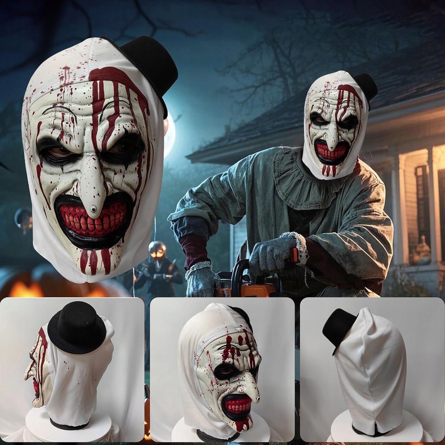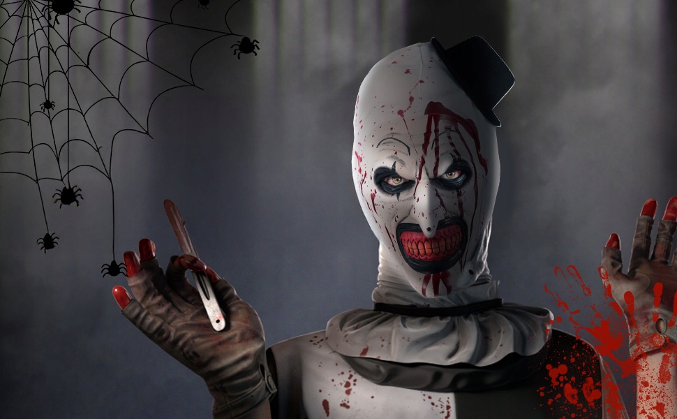 - ✔ Маска клоуна покрыта кровью и имеет трехмерные, реалистичные глаза, нос и губы, создавая ужасающую атмосферу. Форма.