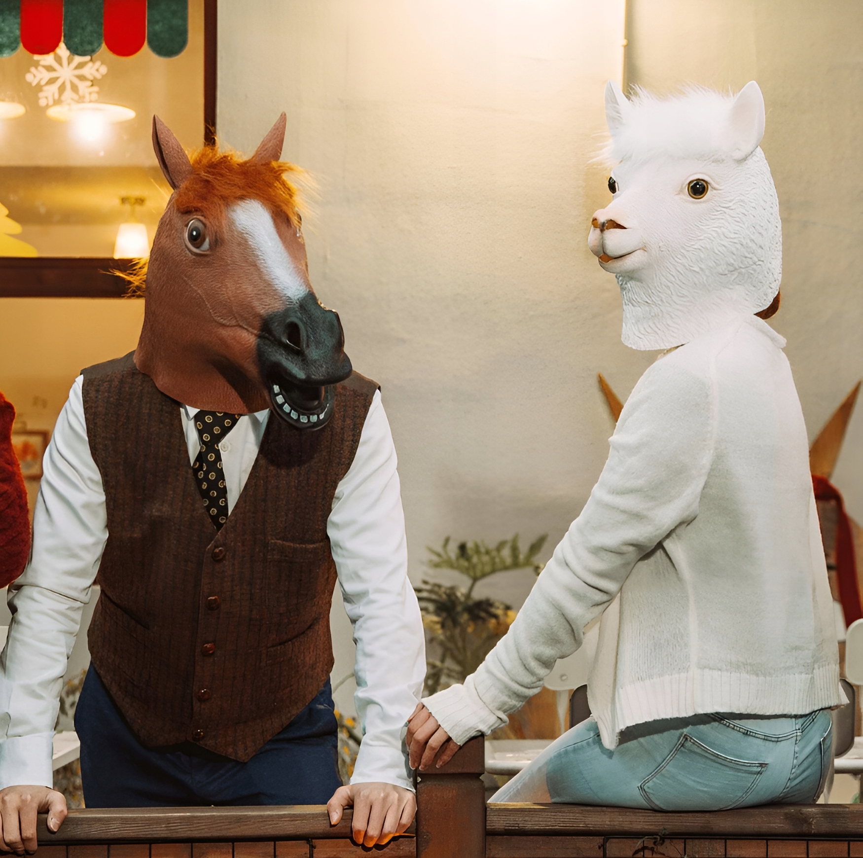 Маска для лица лошади на Хэллоуин. Костюм на Хэллоуин. Забавный мяч. Голова лошади.