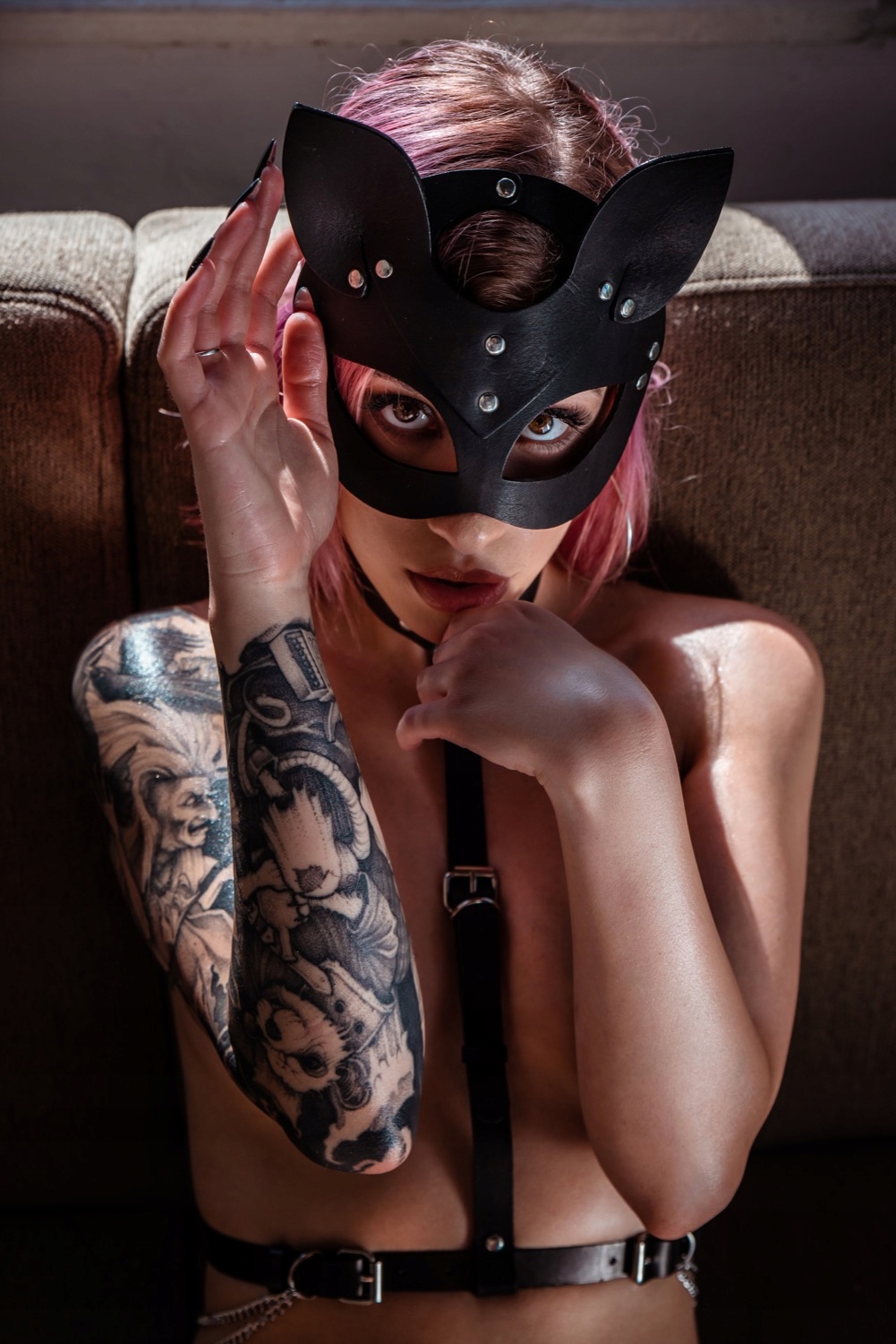 Maska kotki skóra naturalna kobieta kot erotyczna