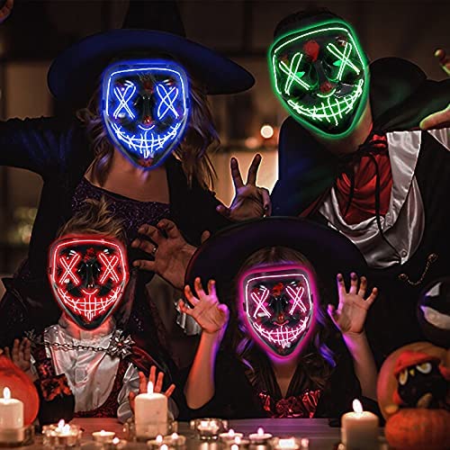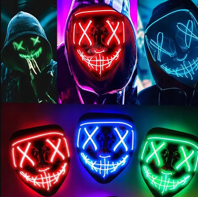 MASKA LED ŚWIECĄCA LEDOWA HALLOWEEN IMPREZA PURGE STRASZNA NA BATERIE