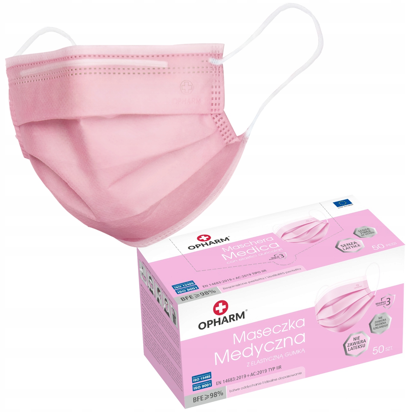 МАСКА МЕДИЧНА OPHARM МАСКА ХІРУРГІЧНА РОЖЕВА З ГУМКОЮ TYPIIR 50 ШТ