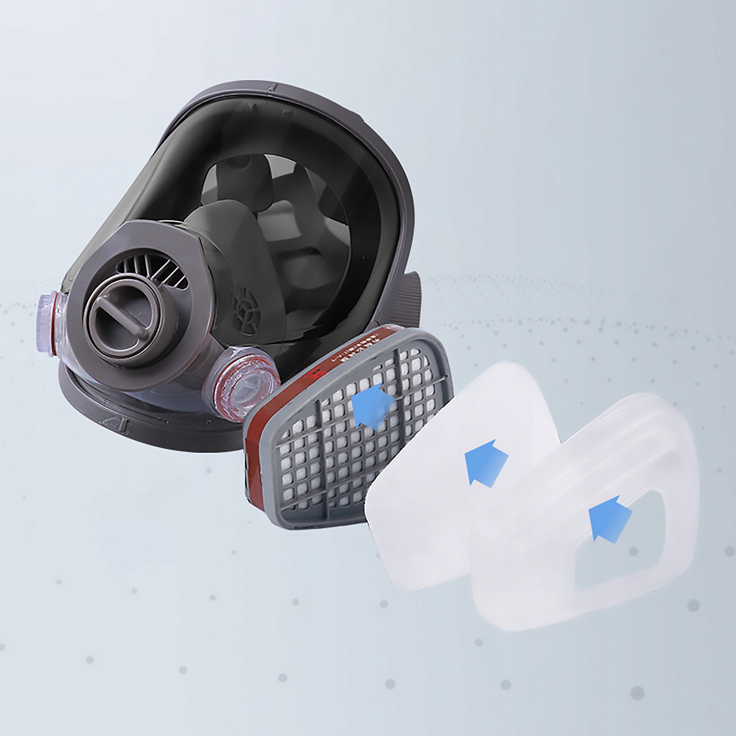 В козырьке имеются отдельные фильтрующие короба, которые эффективно и удобно защищают от твердых частиц определенной концентрации. Подходит для покраски, химикатов, полировки, ухода и защиты окружающей среды.