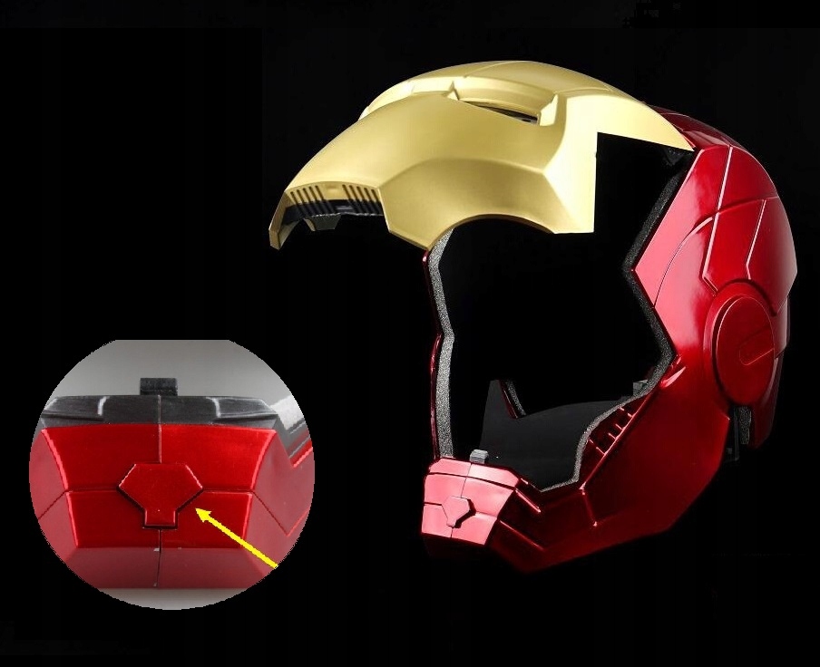 Шлем Железного Человека с открывающимся клапаном, золотой и красный. Хорошо сделанные, светящиеся светодиодные глаза. Благодаря нашему предложению каждый превратится в любимого героя комиксов. Шлем как дополнение к костюму позволит здорово развлечься во время Хэллоуина.
