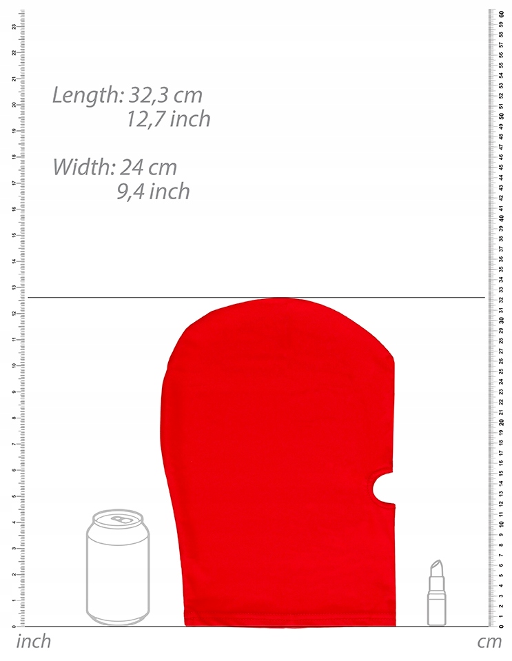 Ткань пропускает небольшое количество света, ослабляя зрение и стимулируя другие чувства. Блестящий черный капюшон может носить и Она, и Он. Тонкая и легкая ткань позволяет дышать и слышать звуки шлепания. Самое приятное то, что у вас по-прежнему есть доступ ко рту объекта!