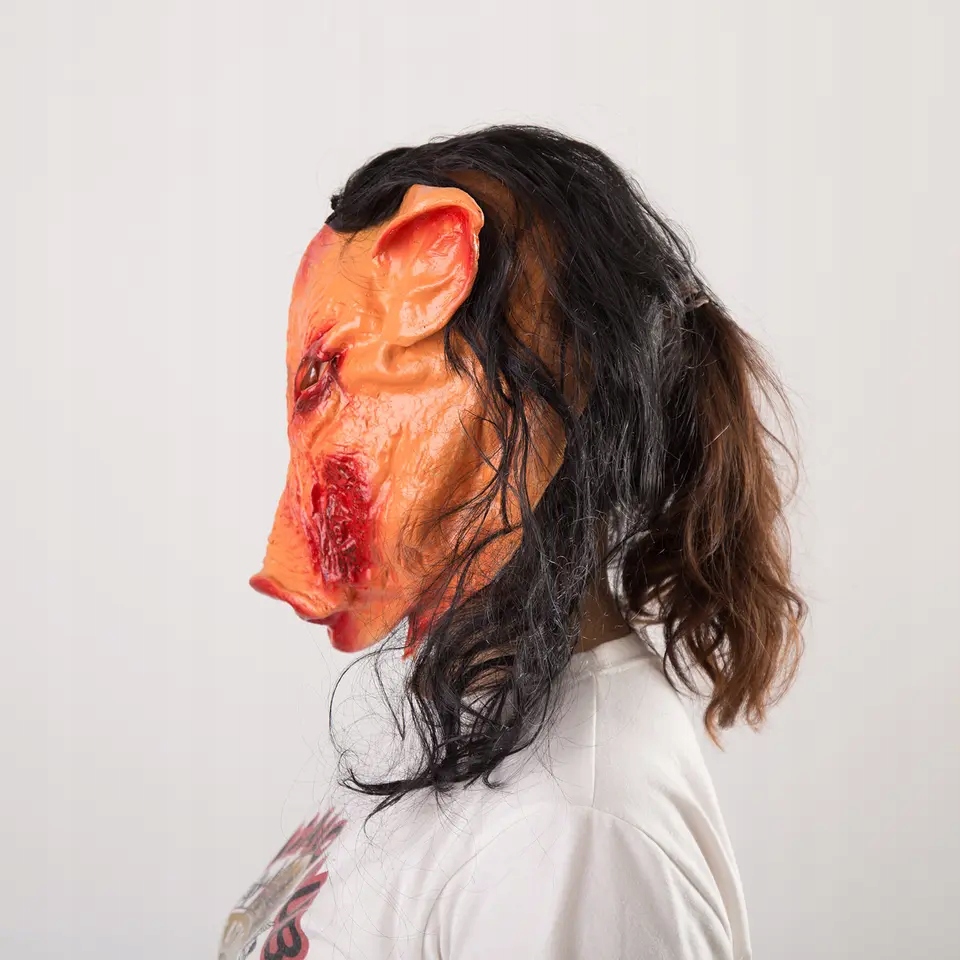 🐗 Доступны универсальные размеры. Также отлично подходит для смелых детей! Страшная маска свиньи из латекса полностью закрывает голову.