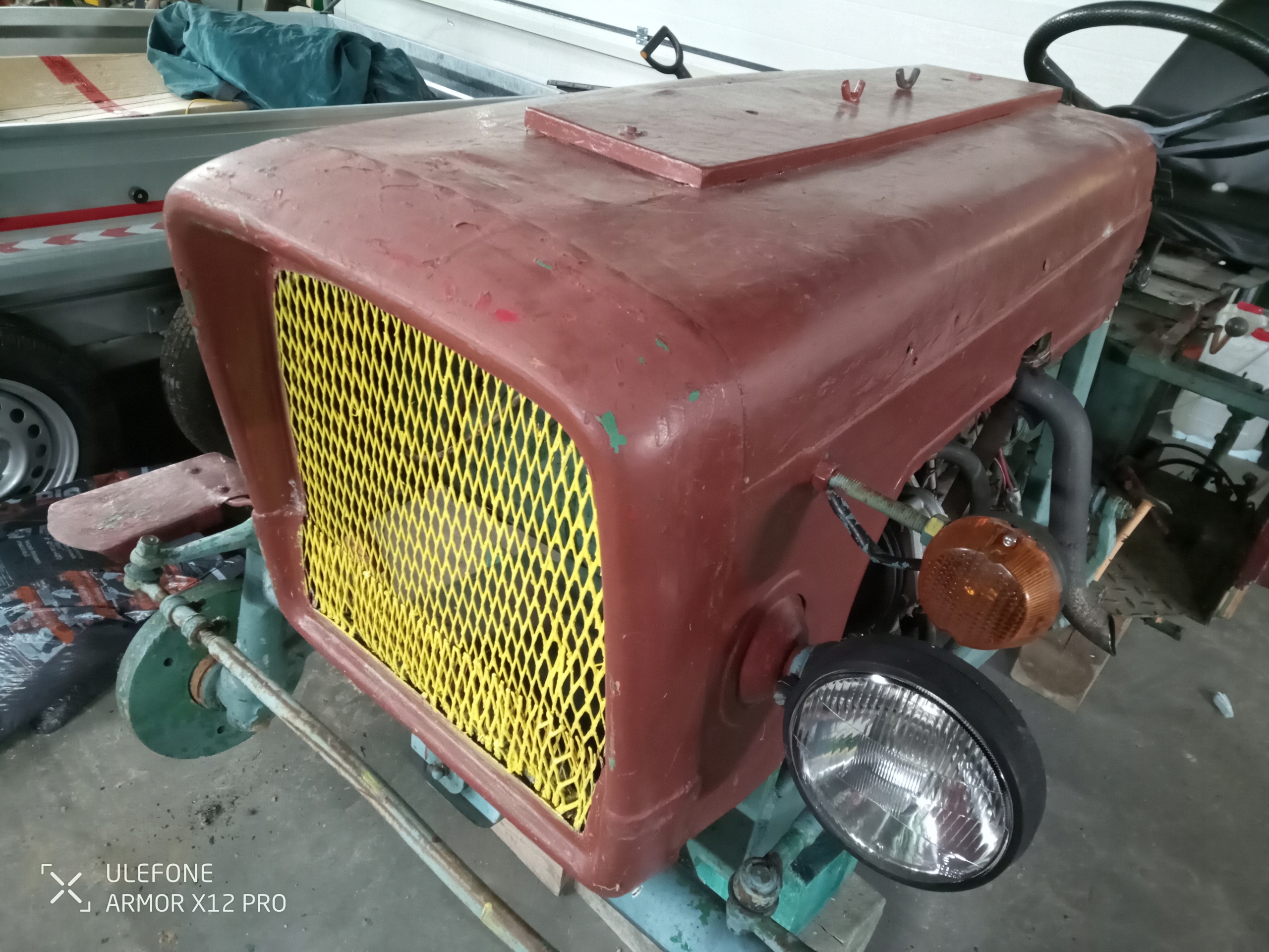 Продаю маску, которая видна на прикрепленных фото. Примечание: на капоте нет передних габаритных/дорожных фонарей, на фотографиях видны только два направления. Маска взята из Ursus C330. Его укоротили и адаптировали под трактор с малолитражным двигателем. По сравнению с исходной маской в ней были сделаны дополнительные отверстия, передняя часть маски укорочена до высоты ок. 49 см, маска укорочена до общей длины ок. Я призываю вас купить!