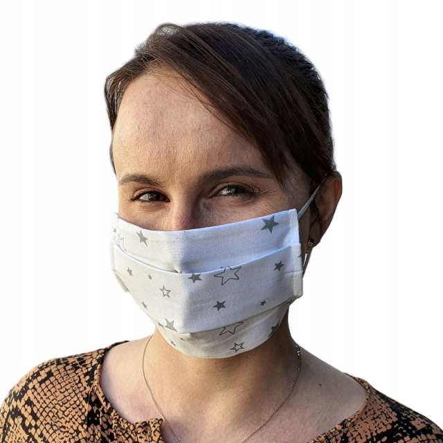 Многоразовая хлопчатобумажная маска с ушными петлями. Версия макета со стильными звездами. Еще белый и чистый, но с изюминкой :) Товар произведен в Польше из хлопка производства польских компаний. Маска многоразовая - можно стирать при 60 градусах и использовать повторно после высыхания.