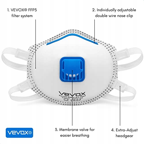 Маска для лица Vevox FFP3 с клапаном, 20 шт.
