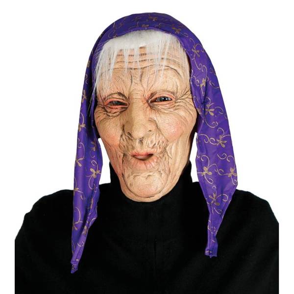 ЛАТЕКСНАЯ МАСКА ВЕДЬМЫ С ФИОЛЕТОВЫМ ШАРФОМ