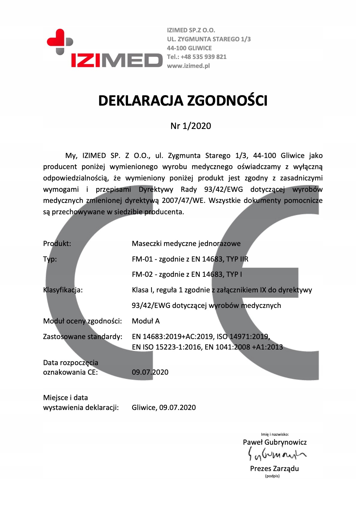 Польская компания IZIMED с современным заводом предлагает медицинские маски высочайшего качества: Тип IIR с BFE ≥ 99%.
