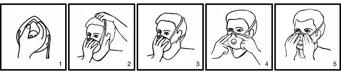 Для обеспечения максимально возможной герметичности лицевой части способ надевания и регулировки полумаски должен осуществляться по следующей схеме. :