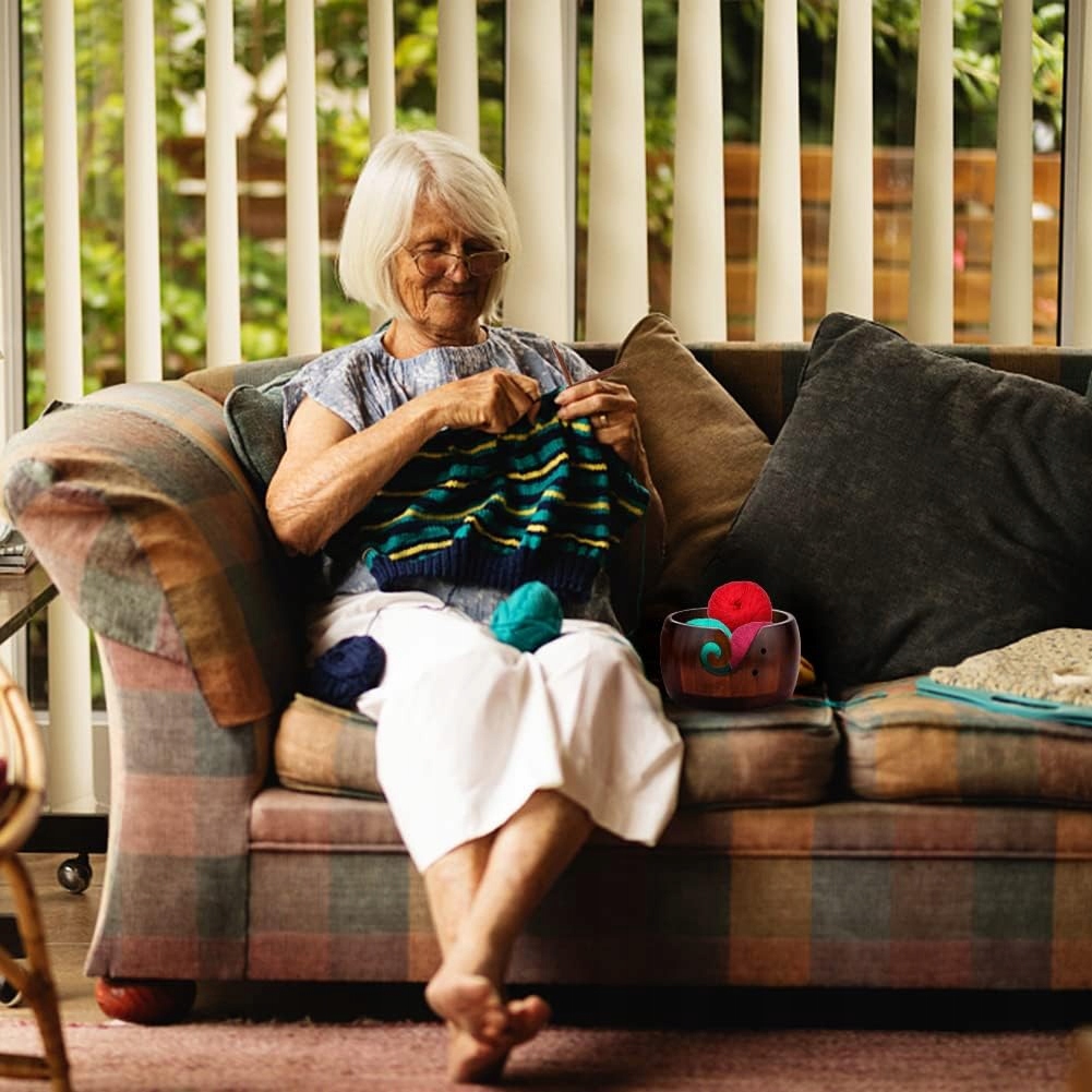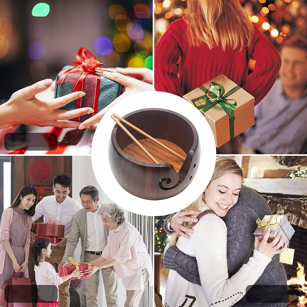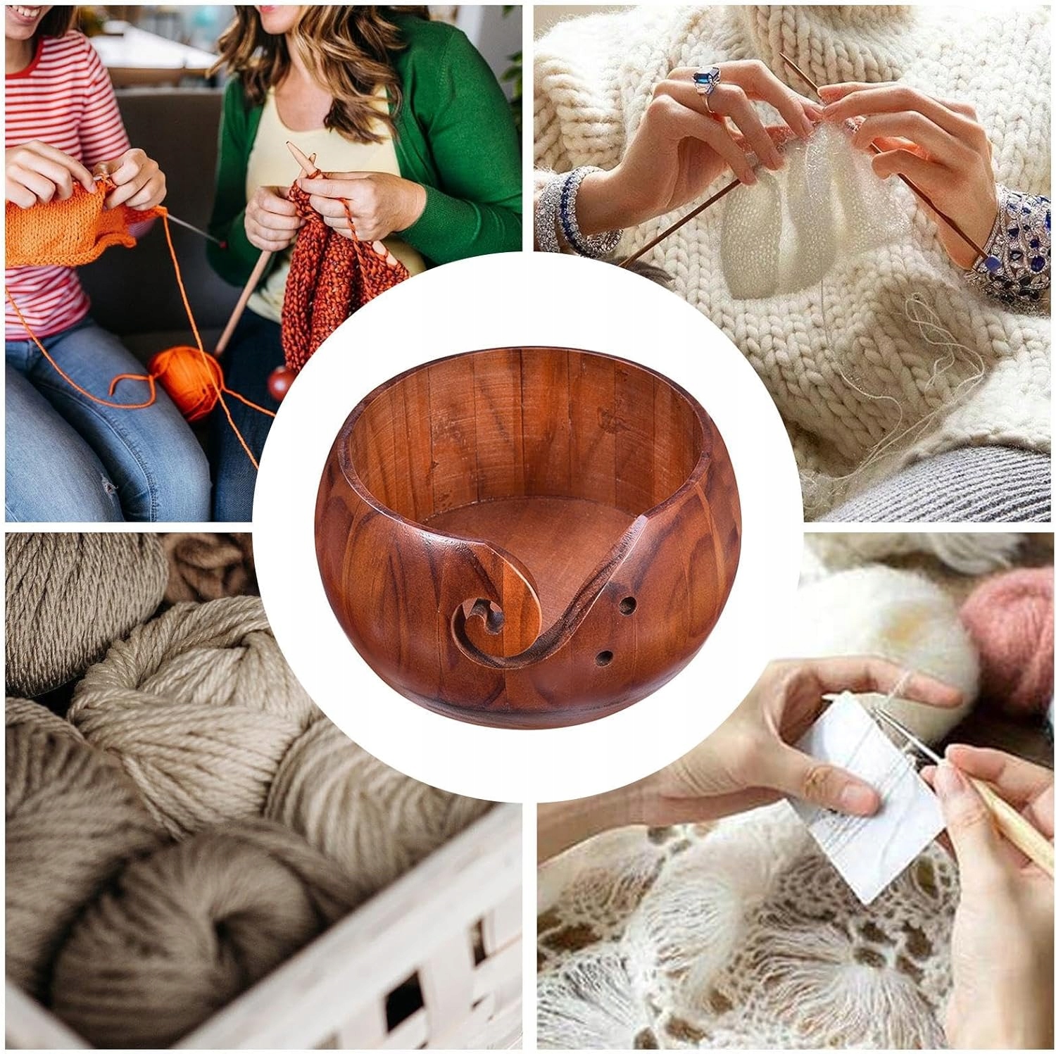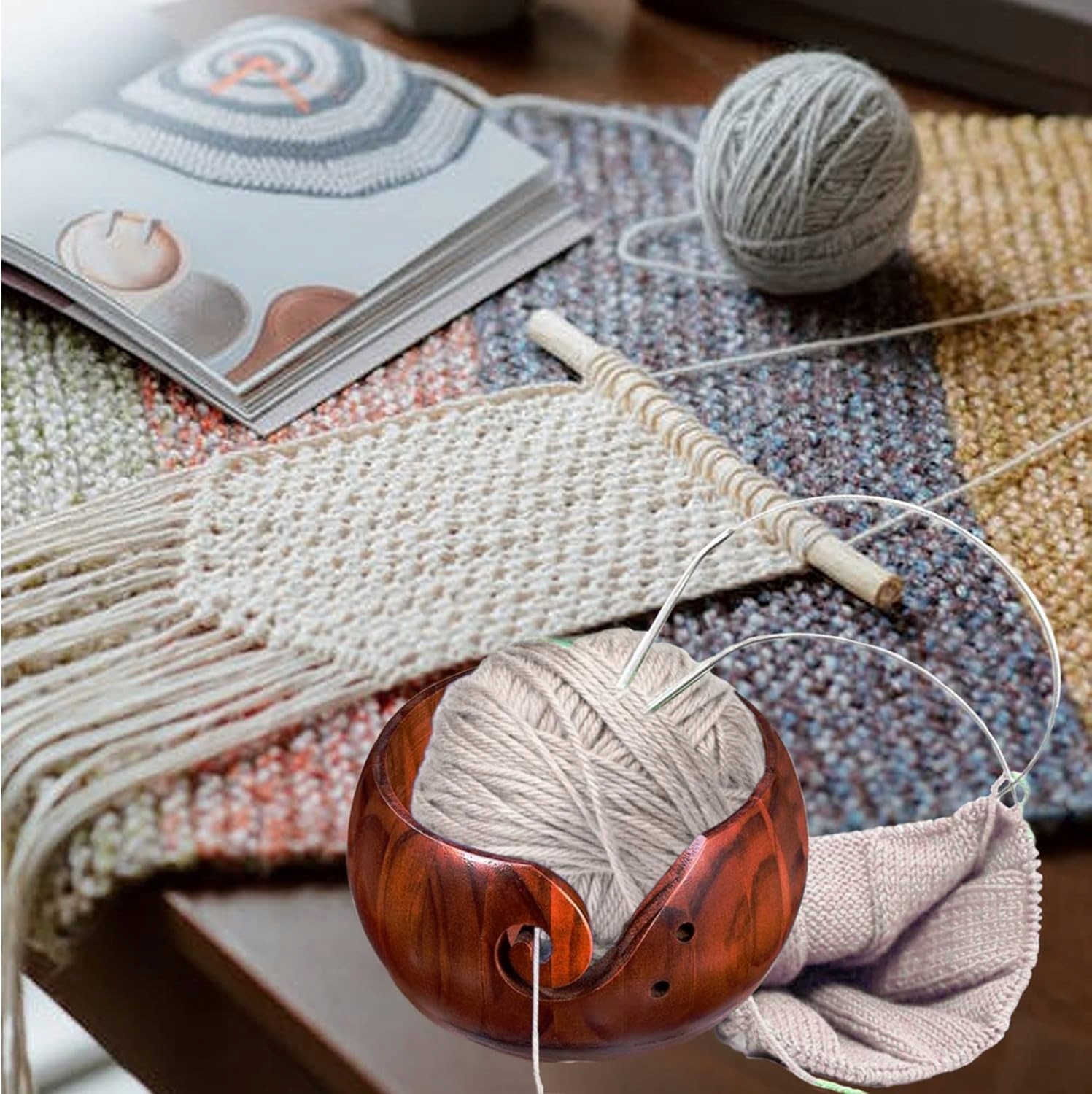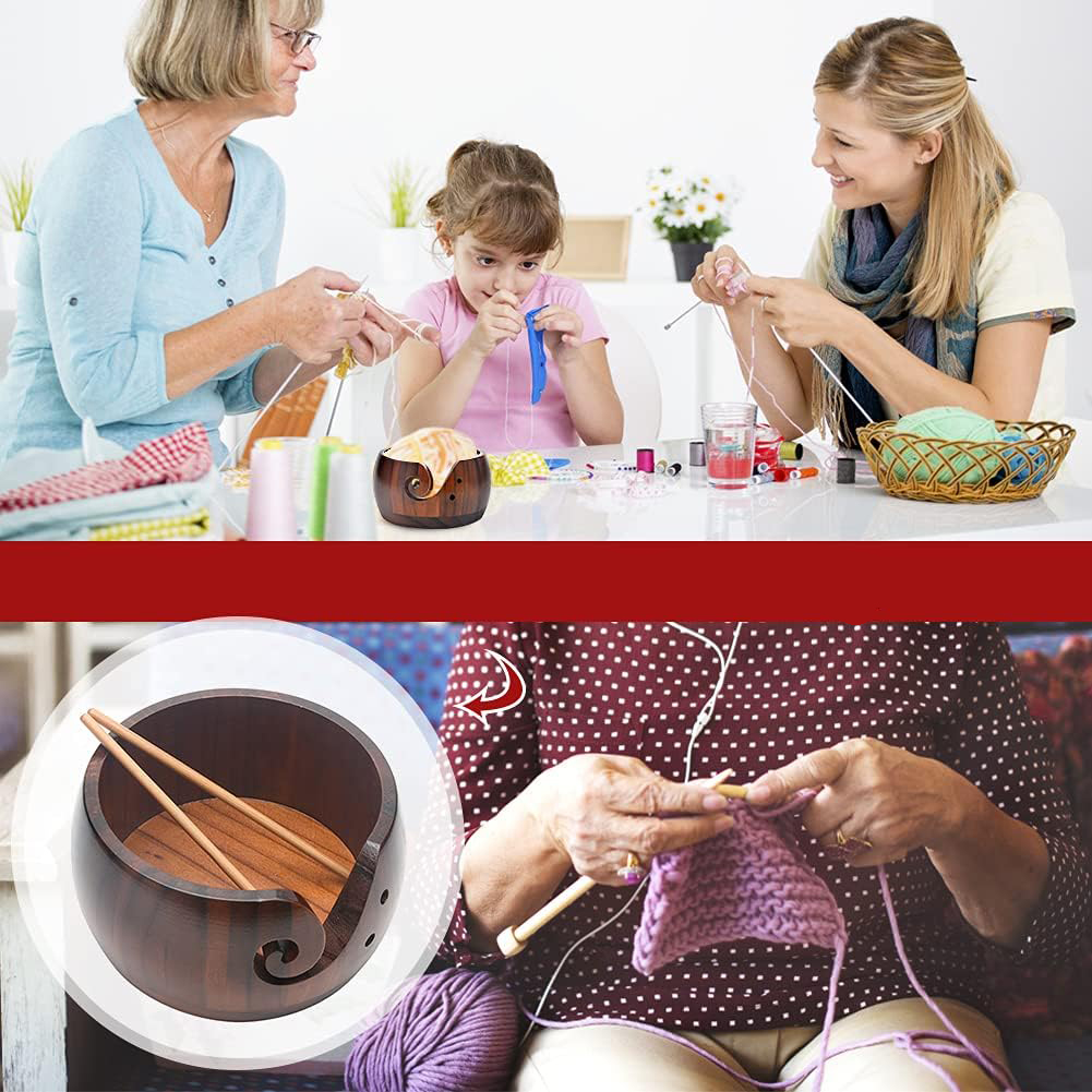 🧶🧵 Премиум-материал: Чаша для пряжи с отверстием и спицами для вязания крючком изготовлена из натурального бамбука с прозрачным покрытием, гладкая и легкая, прочная и прочная.