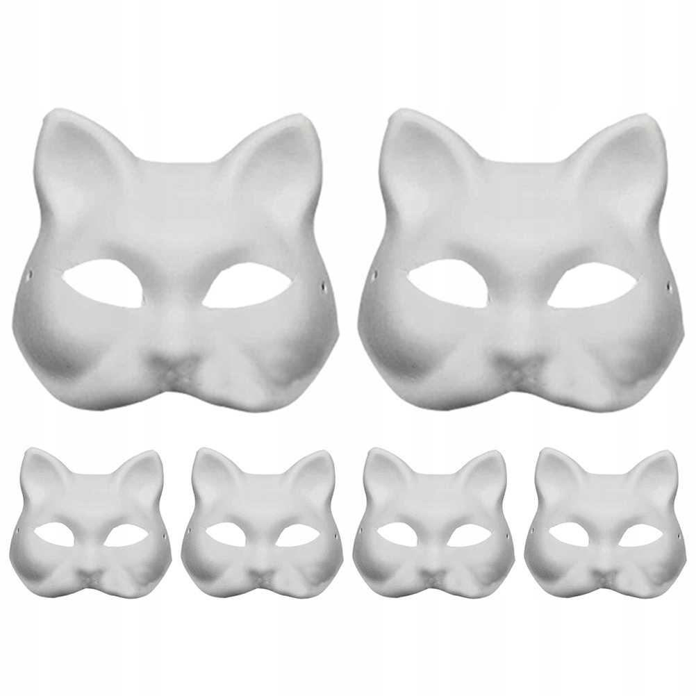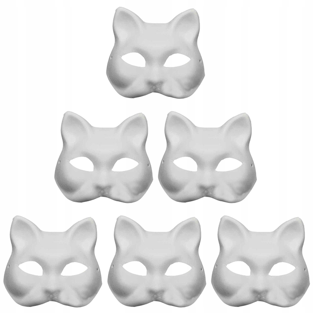 ЗАПУСКНЫЕ МАСКИ СДЕЛАЙ САМ БЕЛАЯ БУМАГА МАСКАРАДНЫЕ КОШАЩИЕ МАСКИ ДЕТСКИЙ МАКИЯЖ 6 ШТ
