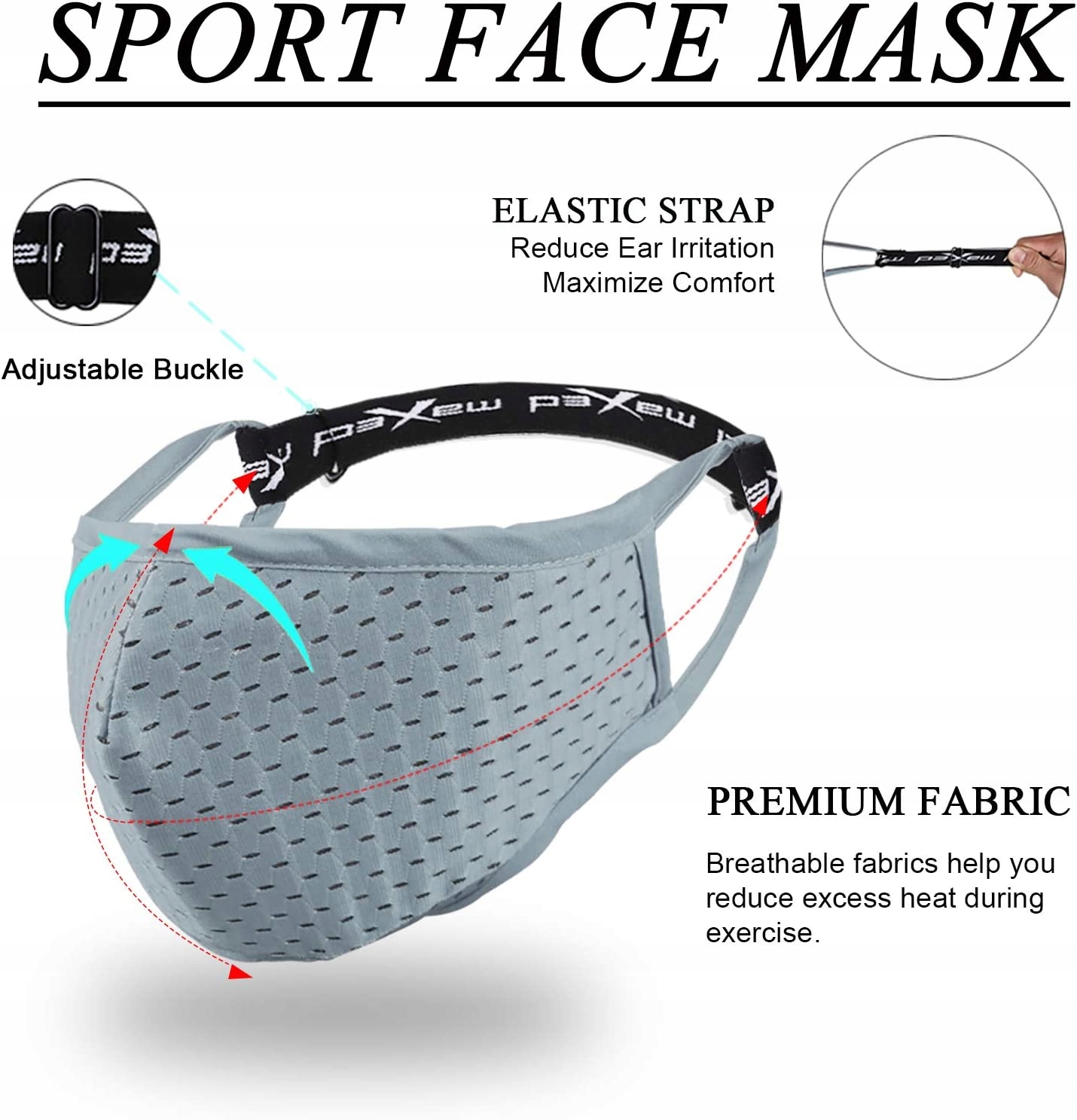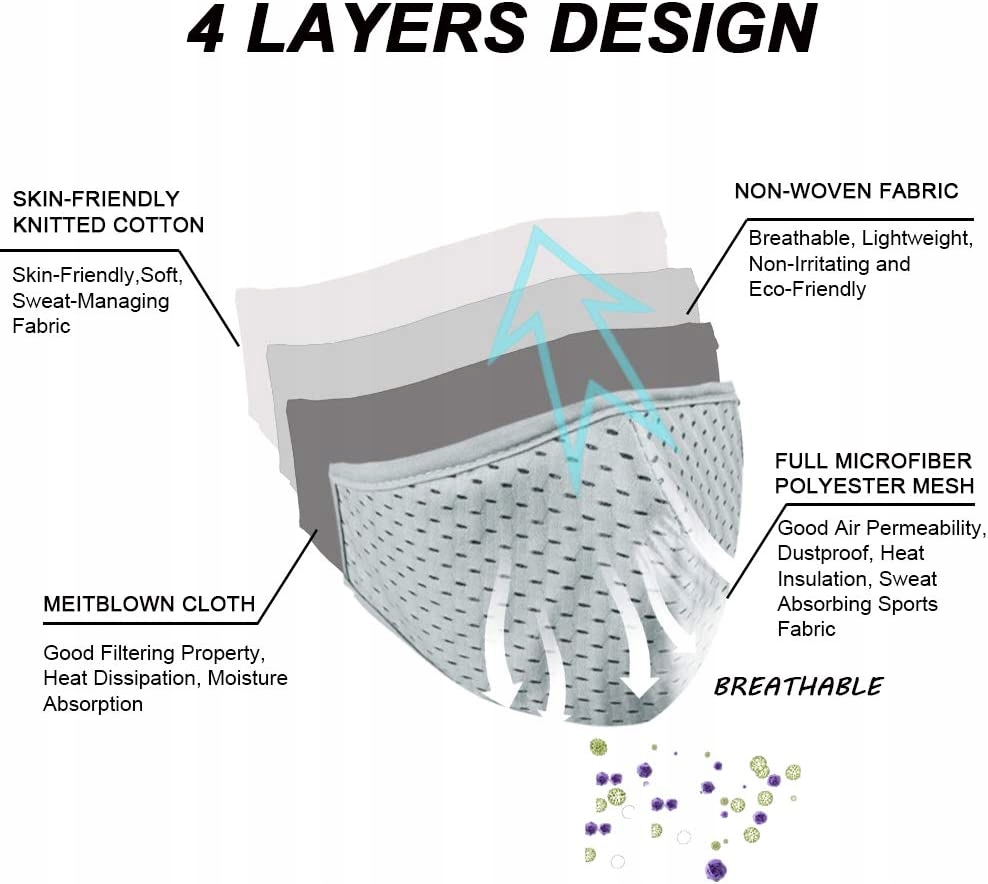 - Наружный и внутренний слои спортивной маски для лица имеют отверстия для воздуха, она легкая, дышащая и впитывает пот. Он может защитить вас, позволяя дышать более свободно и беспрепятственно.
