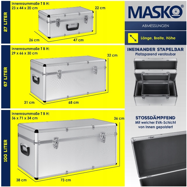 Маска предлагает вам набор из 3 алюминиевых ящиков для отдельного хранения, например, Инструменты, коллекции, компакт -диски, файлы и т. д. Коробки, выглядящие высоким качеством, имеют хорошего качества и очень разнообразны благодаря трем размерам.