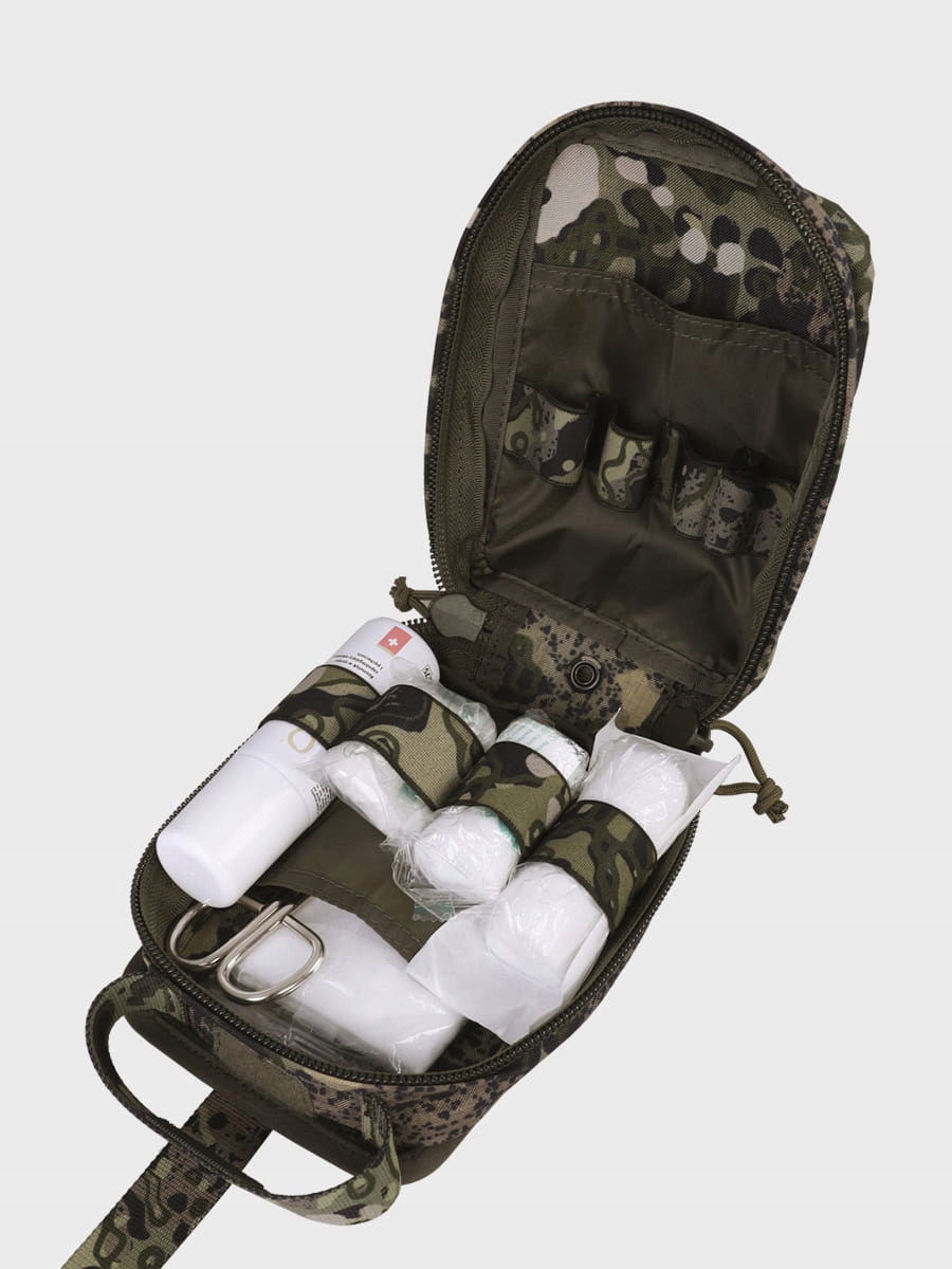 Аптечка первой помощи Maskpol представляет собой комбинацию специально разработанного кармана и универсального медицинского вкладыша. Все это позволяет удобно и продуманно распределить все основные принадлежности первой помощи - от перчаток, марли, бинтов, дезинфицирующего средства и ножниц.