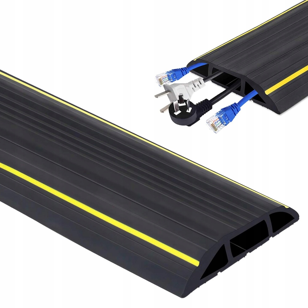Две ярко -желтые полосы, проходящие вдоль верхней части крышки кабеля, обеспечивая лучшую видимость и безопасность. Они служат предупреждением, чтобы привлечь внимание людей к обложке и защищать их от случайной поездки над ним.