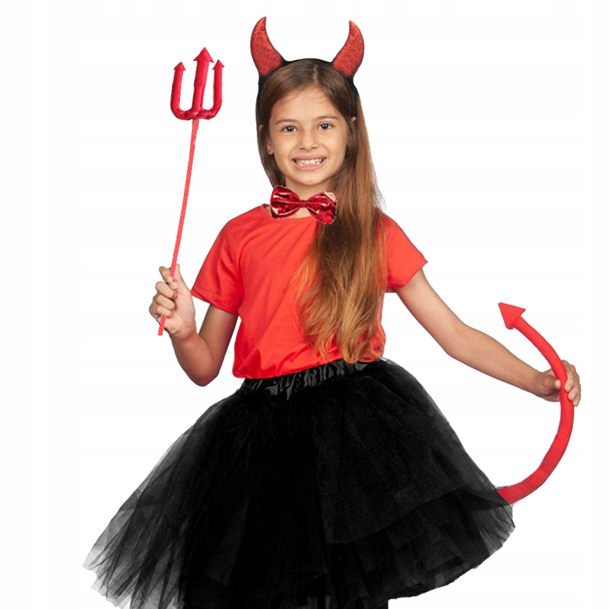 Набор состоит из 5 частей: вилки; повязки на голову с рогами, галстуком-бабочкой, хвостом и юбкой. Маскировка визуально привлекательна, имеет интересный внешний вид и эстетичную отделку. Эти приятные на ощупь аксессуары позволят вам перевоплотиться в настоящего дьявола.
