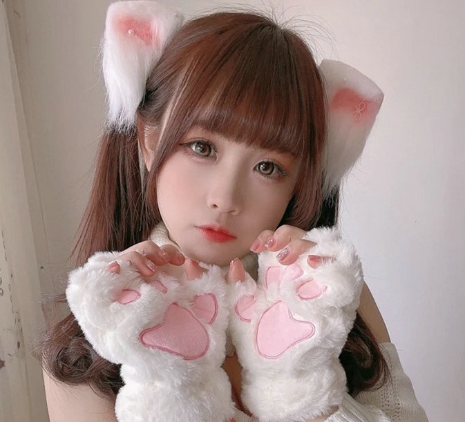 Маскировка кота с белыми ушками, повязка на голову и перчатки, комплект, костюм кошки, костюм кошки
