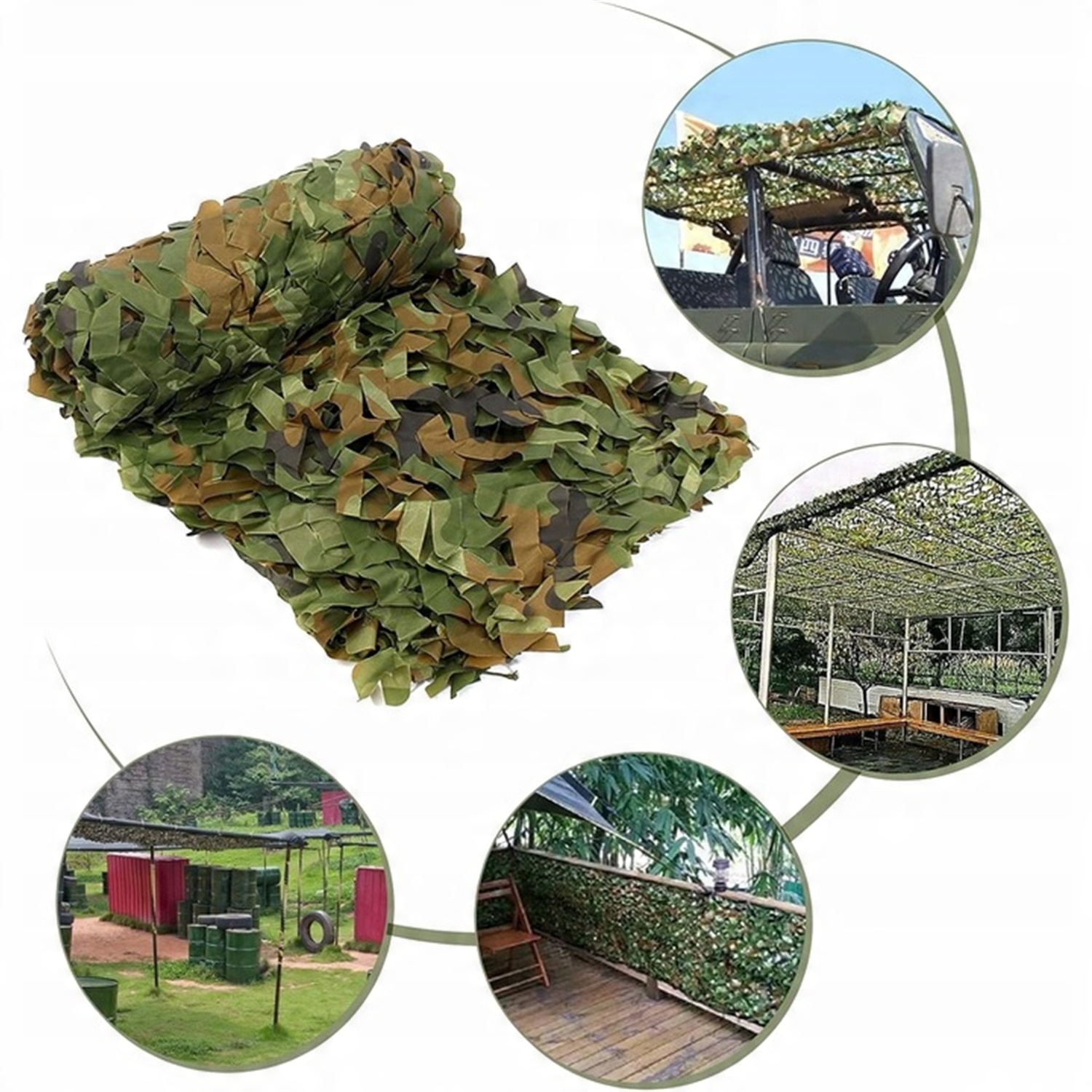 - Маскирующие сети являются экологически чистыми и широко используются для различных целей, особенно для тренировочных баз, парков развлечений, украшений, военных выставок, ландшафтных систем, фотографий, авиационной фотографии, тени, зеленых, украшений и т. Д.