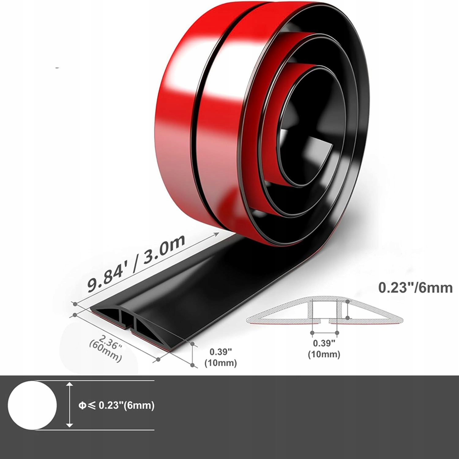5. 【Прочные и практичные полукруглые уплотнения для электрических кабелей】Уплотнения имеют функцию защиты от сдавливания. Если наступить на кабель-канал, он, даже если он скрипит, не сломается. Кабельный канал имеет 3 отдельных канала, в которые можно протягивать кабели. Средний имеет ширину 60 мм и высоту 10 мм. Два внешних имеют ширину 9 мм и высоту от 3 до 5 мм. Это делает напольную прокладку пригодной для кабелей или сетевых проводов различной толщины;