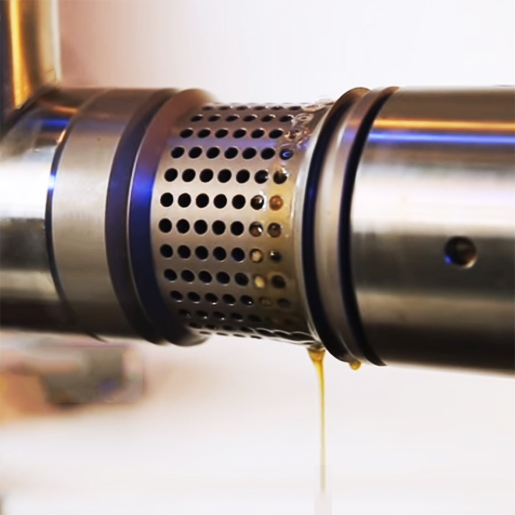Масло медленно прессуют на винтовом прессе так, чтобы температура прессования не превышала 37°С. Таким образом, в масле сохраняются все свойства активных веществ, содержащихся в семенах, из которых отжимается масло.