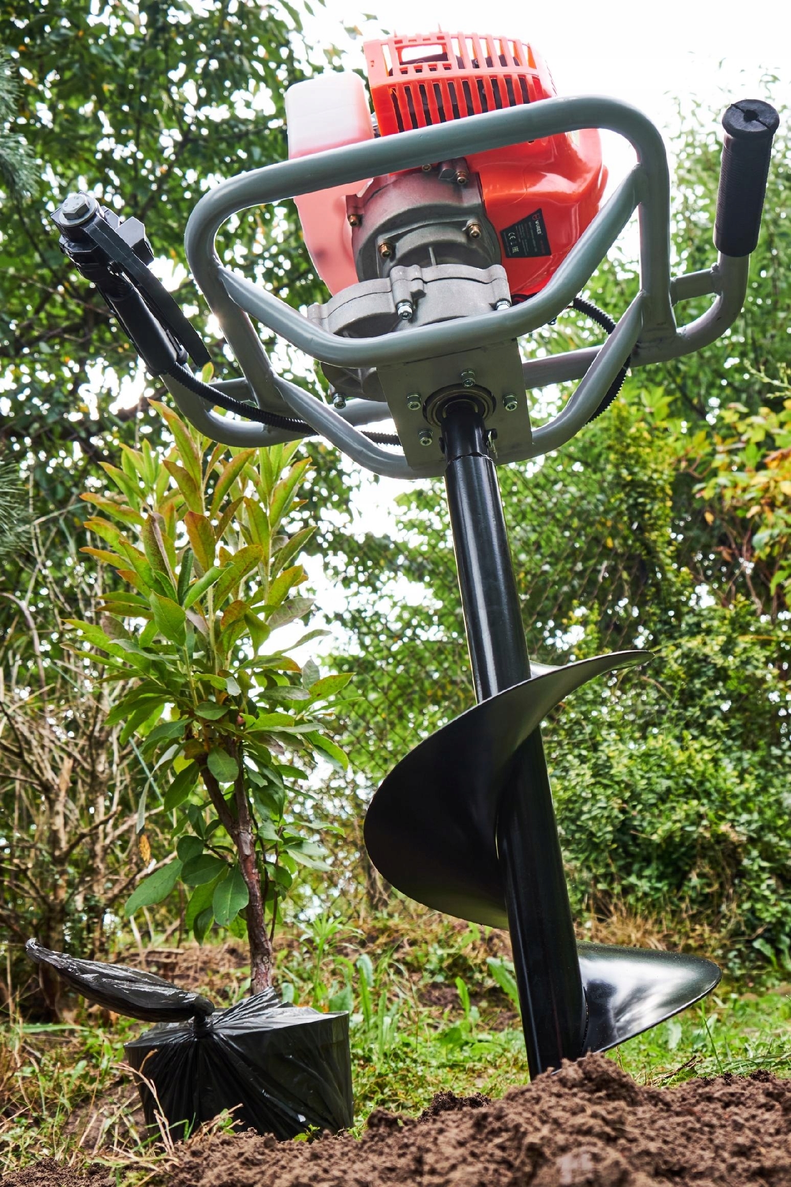 Приведена в действие эффективной установкой сгорания мощностью 6,7 л.с. , буровая установка позволит без проблем просверлить отверстия в земле для: