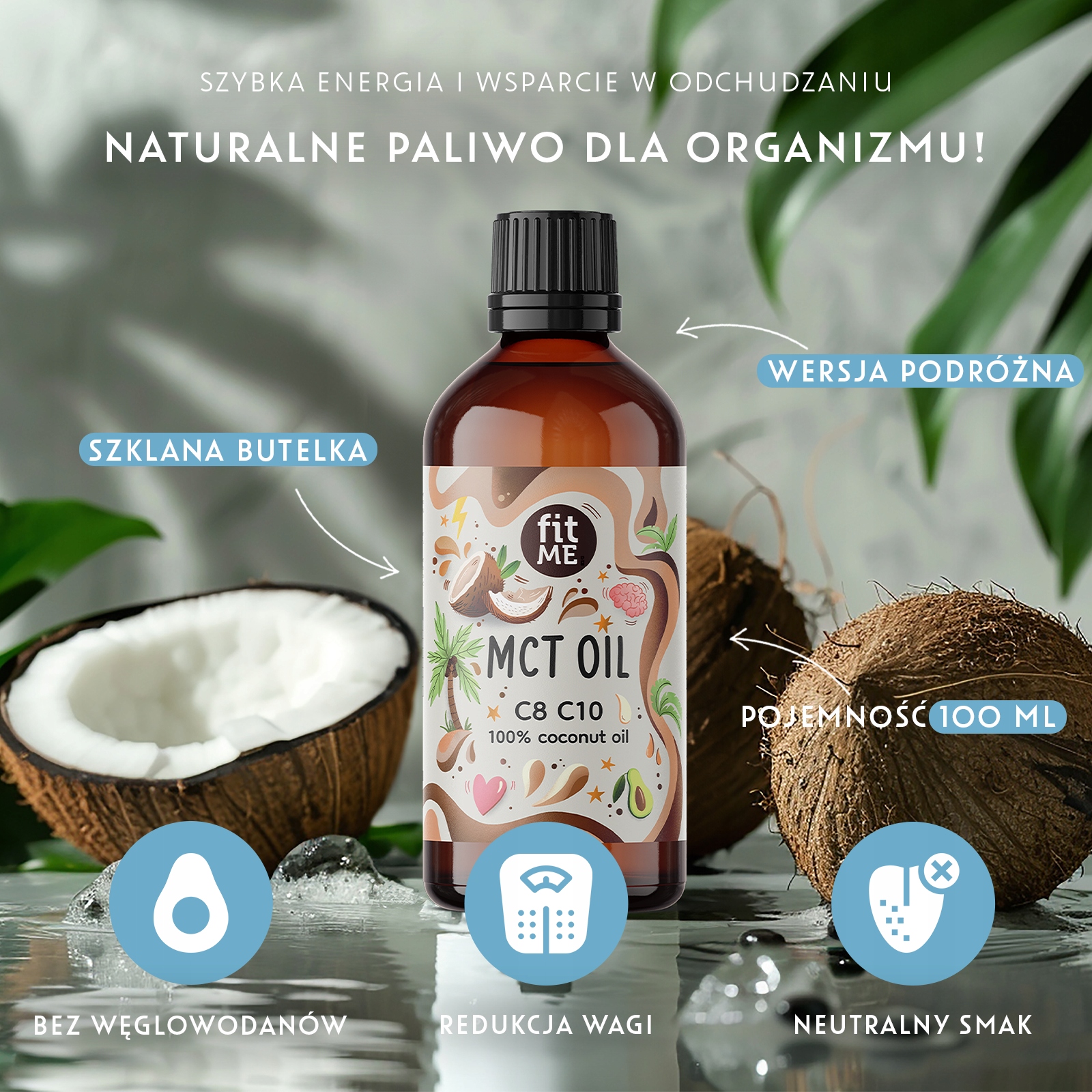 Знаете ли вы, что после употребления масла MCT fitME вырабатывается энергия? C8+C10 длительно сохраняется по сравнению с энергией, полученной из углеводов? Кроме того, кетоны не накапливаются в жировой ткани.