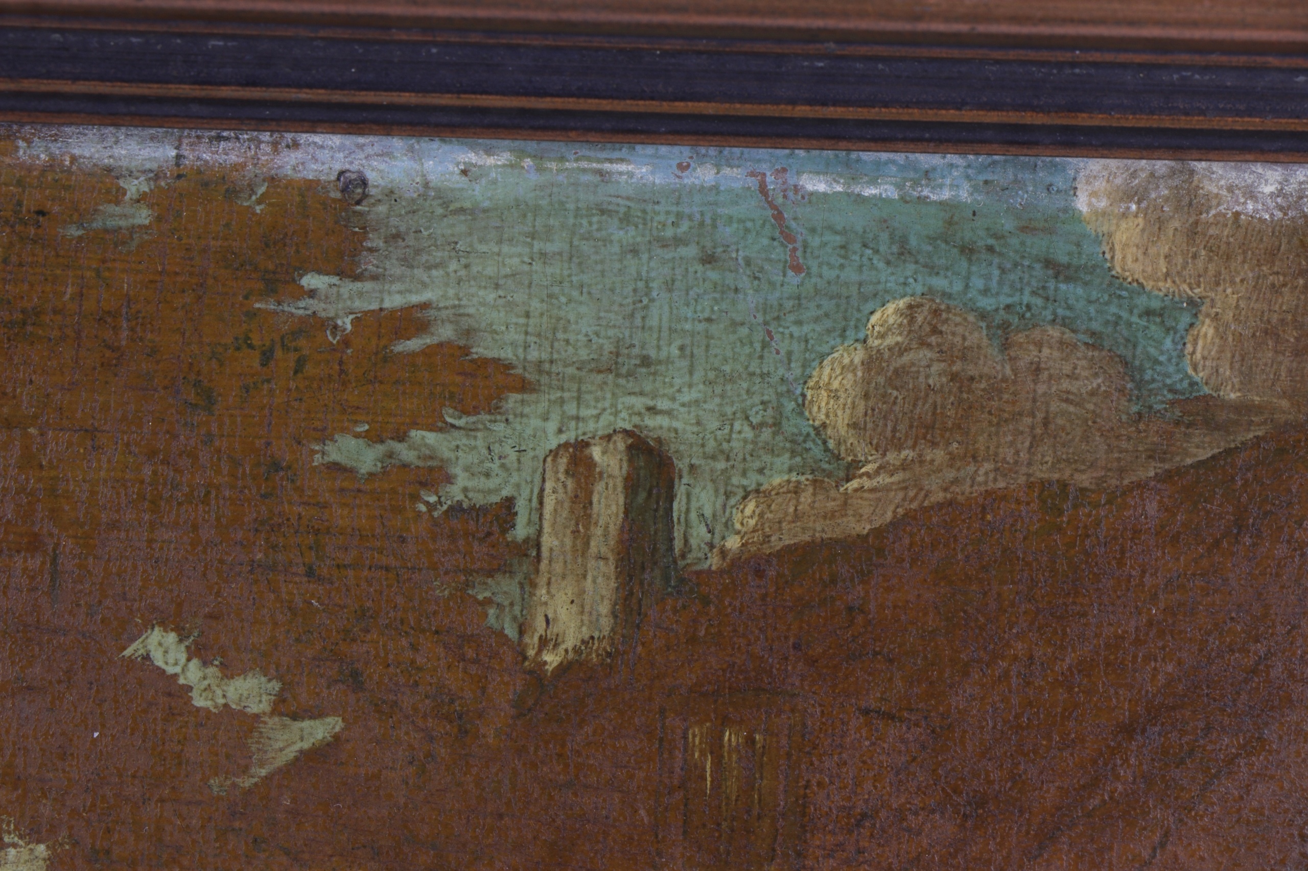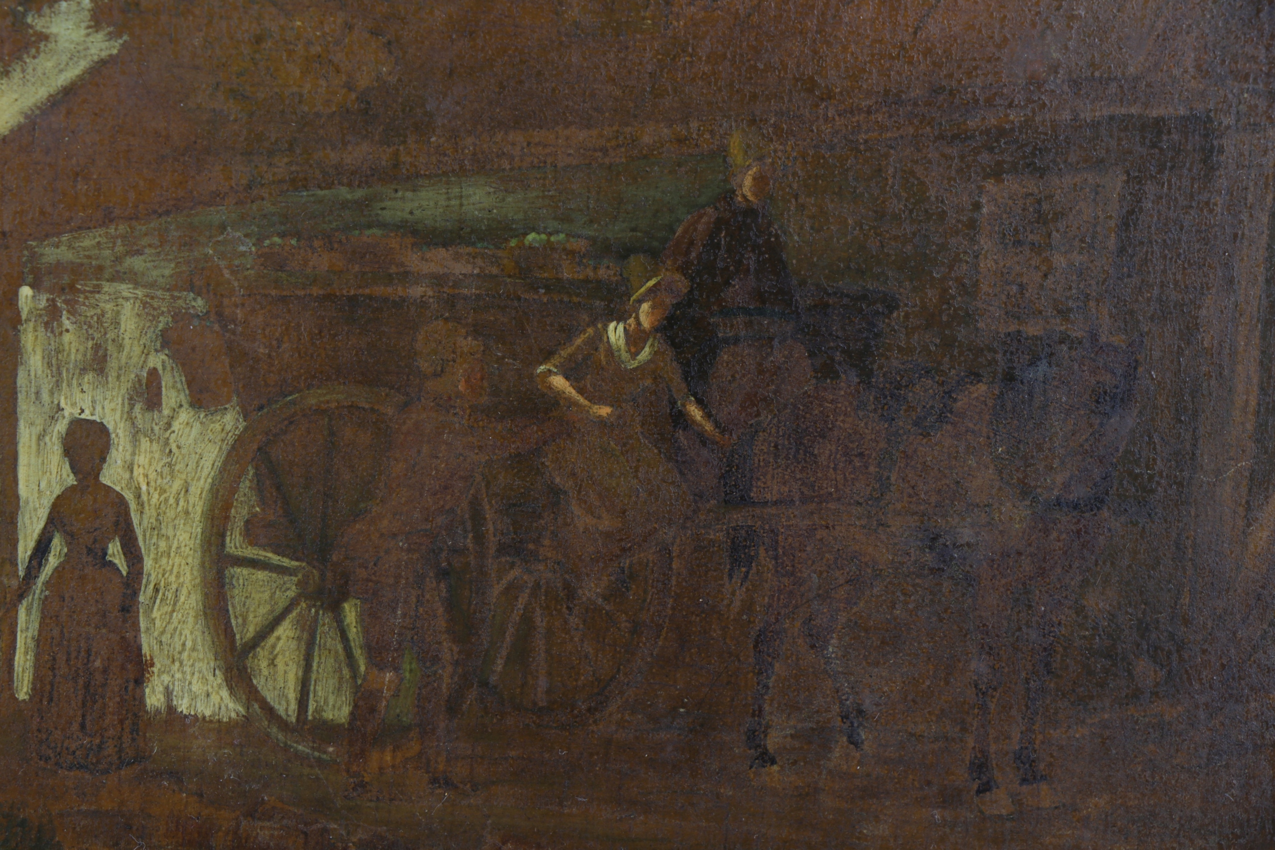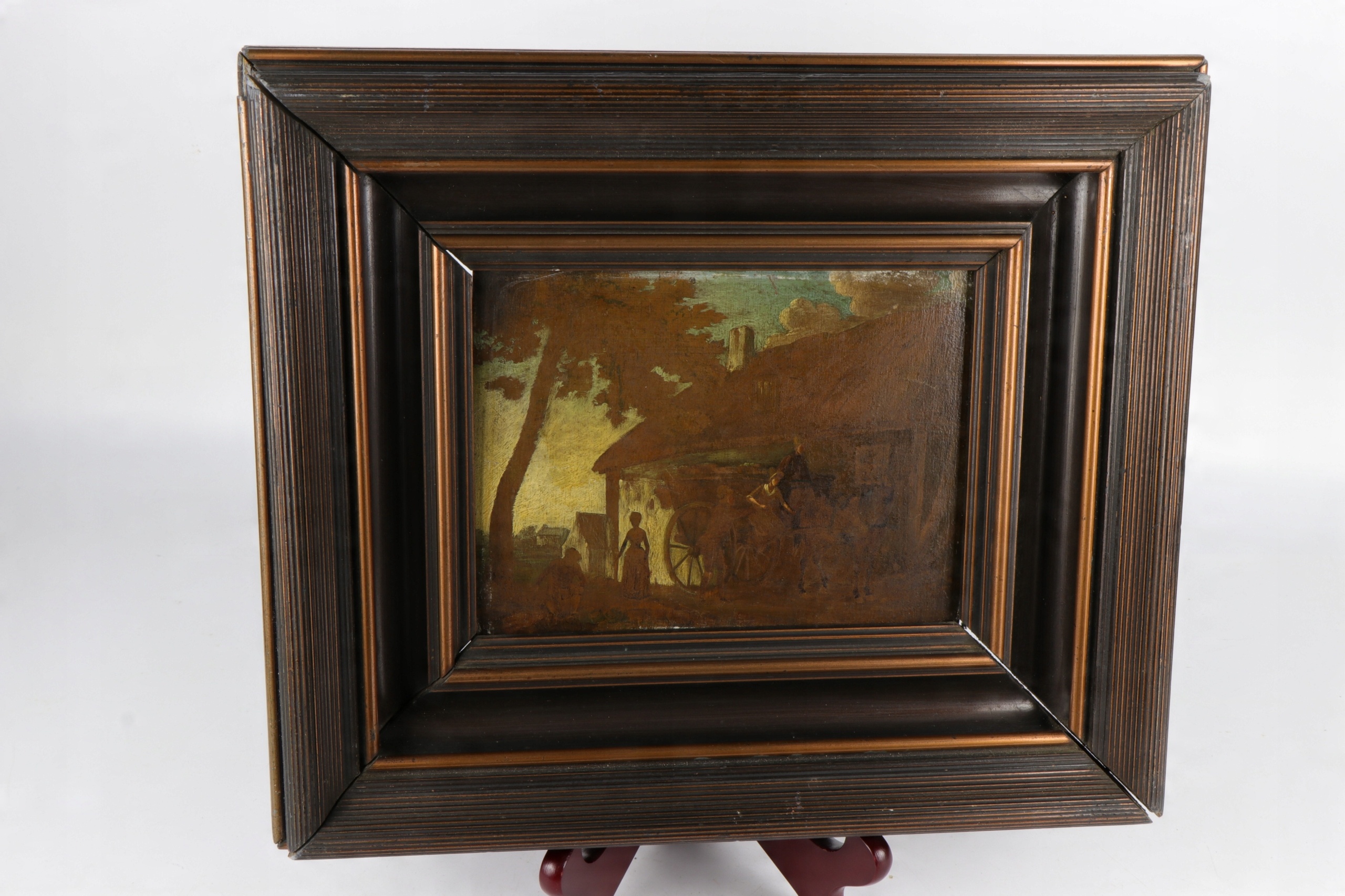 изображение масла, окрашенное на доске, к сожалению, часть красок, натертое изображение для поддержания. Изображение представлено на картинке с каретой. Изображение с кадром. Правление, вероятно, красное дерево. Изображение для обслуживания. Носит или вымыта часть красок. Рама для ремонта. Несмотря на состояние очень интересного объекта.