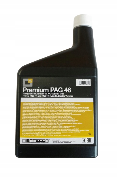 Масло PAG 46 – полностью синтетическое масло, применяемое в системах кондиционирования автомобилей с использованием хладагент R134a. Это базовое масло, используемое для обслуживания системы кондиционирования автомобиля среди всех типов масел, благодаря наименьшей плотности. Использование масел разных классов плотности зависит от типа системы кондиционирования (рекомендации производителя).