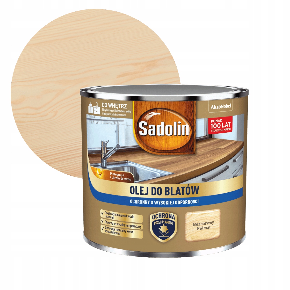 Лак для столешниц на кухне и в ванной от Sadolinобъемом 500мл – эффективное масло, используемое особенно внутри помещений на гладких и строганных деревянных поверхностях. Масло Садолин дает полуматовый оттенок и не меняет цвет древесины, тем самым подчеркивая естественную красоту деревянных поверхностей.