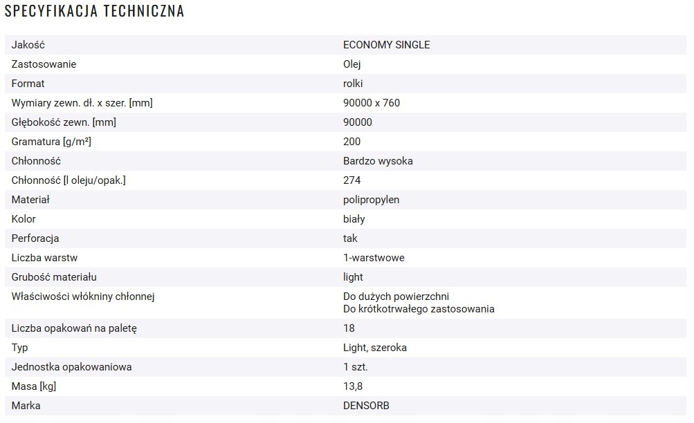 Маслоабсорбенты DENSORB, рулон впитывающего нетканого материала Эконом Одиночный, легкий, 76 см x 90 м