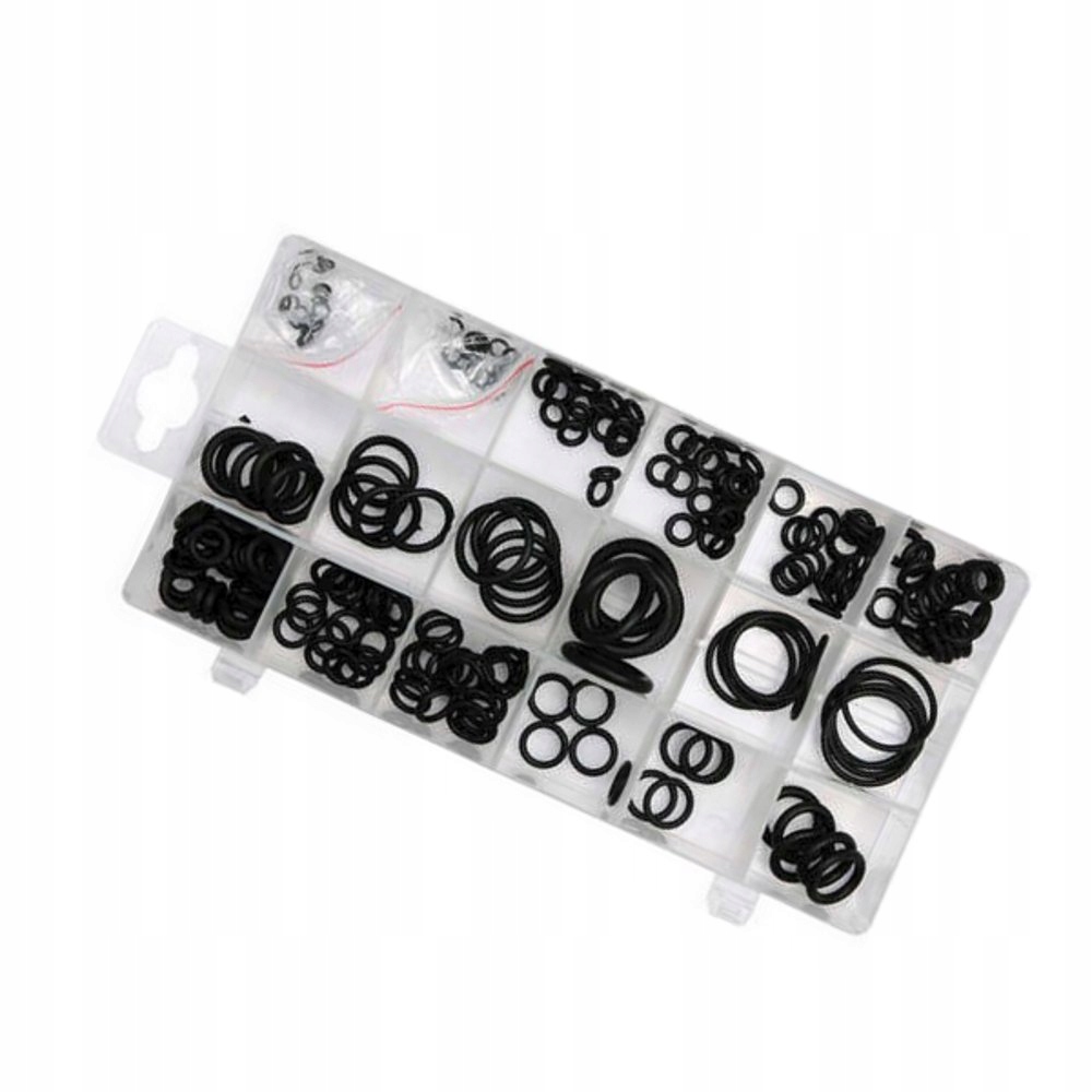 - Практичный набор из 225 резиновых уплотнительных колец.