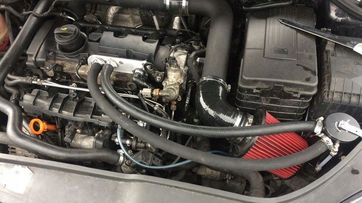 - Переходник для шлангов 2x20мм, установленный вместо клапана PCV на клапанной крышке OE06F129101R