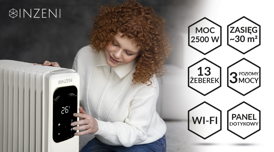 Масляный электрорадиатор INZENI 2500W, 13 ребер, белый