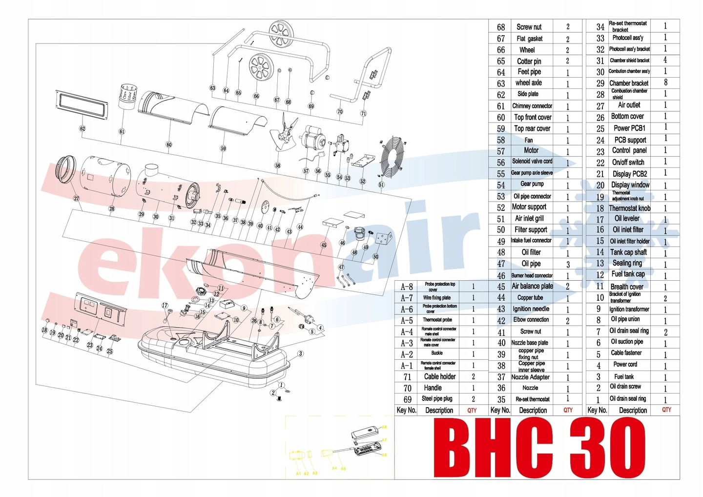 BHC 30 — масляный обогреватель высокого давления мощностью около 30 кВт, теплообменник, предназначенный для быстрого нагрева скважин. вентилируемые помещения, такие как: площади, строительные площадки, заводы, склады, магазины, холлы, теплицы, животноводческие помещения. Их можно использовать для обогрева как целых объектов, так и отдельных мест.
