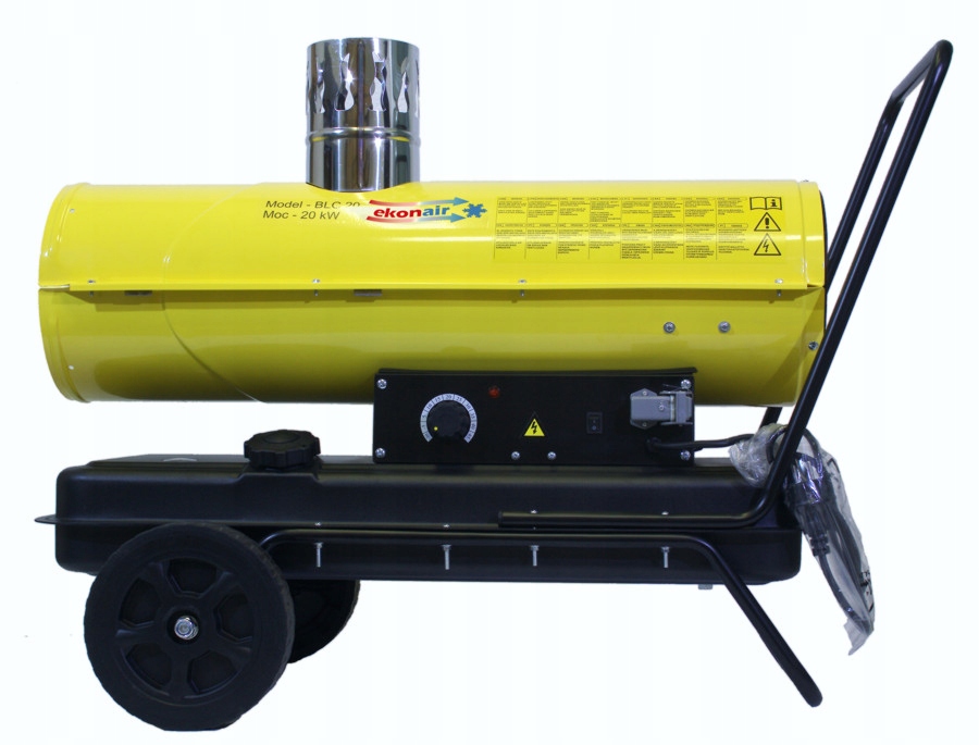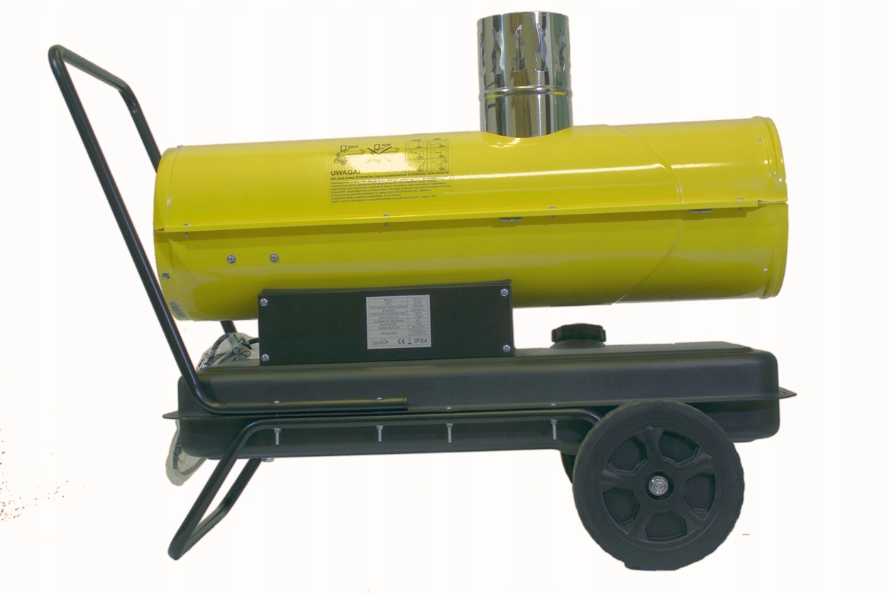 Это масляный обогреватель низкого давления мощностью около 20 кВт, теплообменник (с дымоходом). Предназначен для быстрого обогрева хорошо вентилируемых помещений, таких как: строительные площадки, заводы, склады, магазины, холлы, теплицы, животноводческие помещения. Их можно использовать для обогрева всего здания, а также отдельных мест.