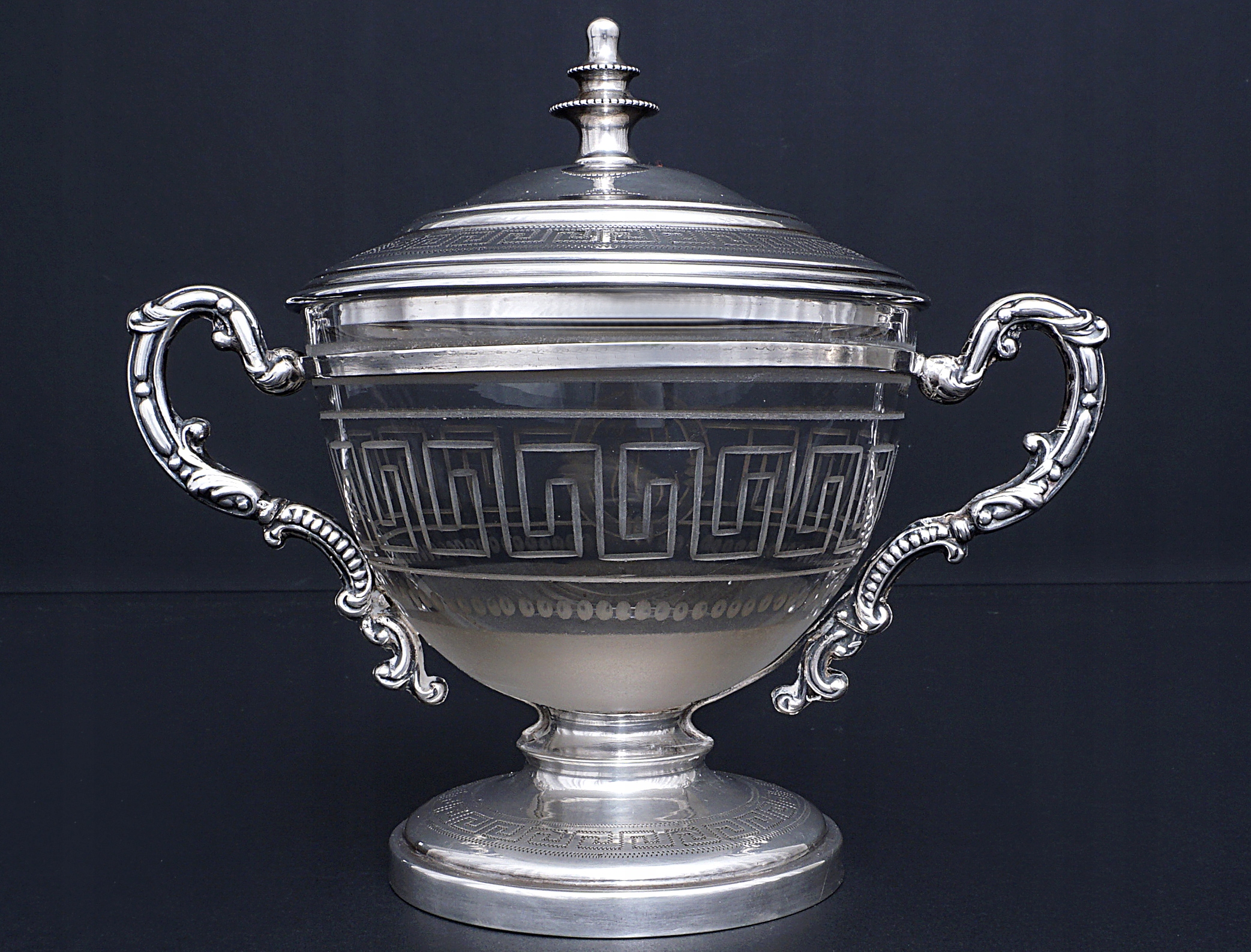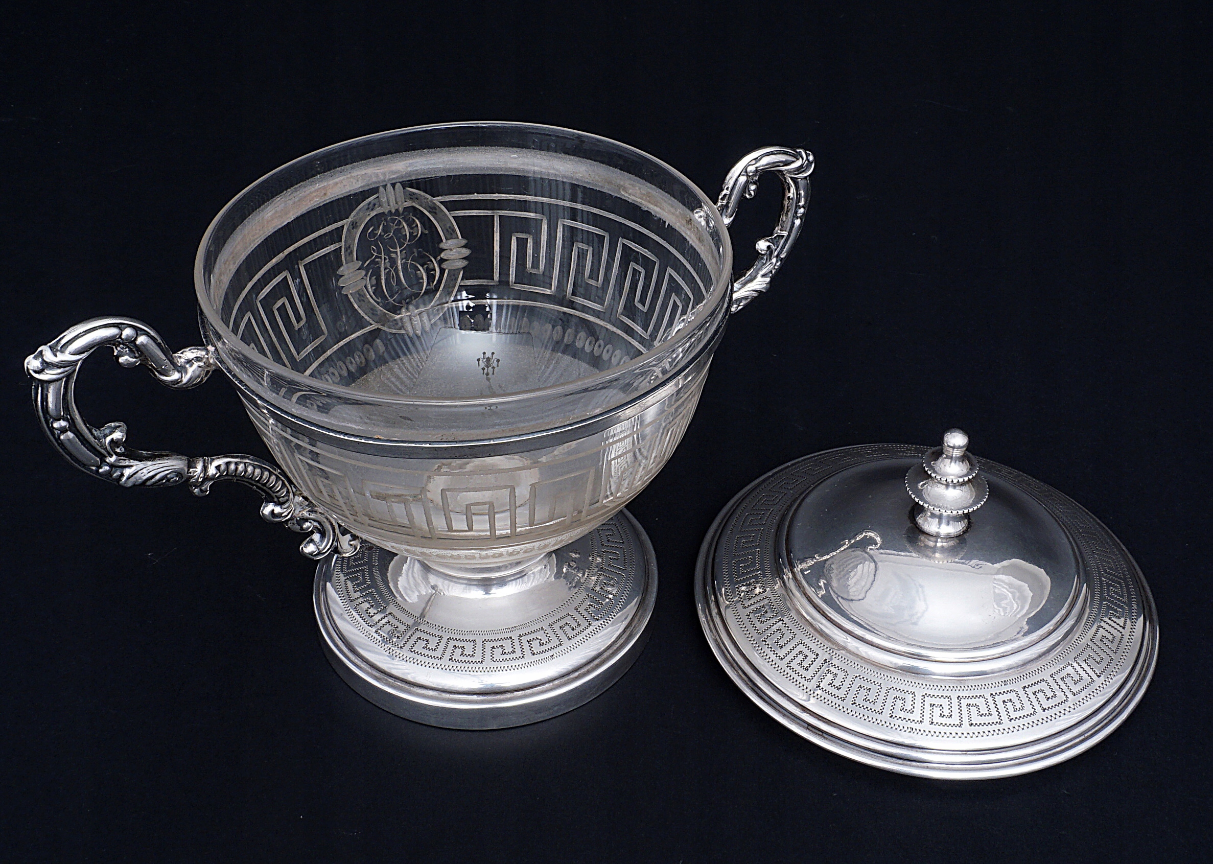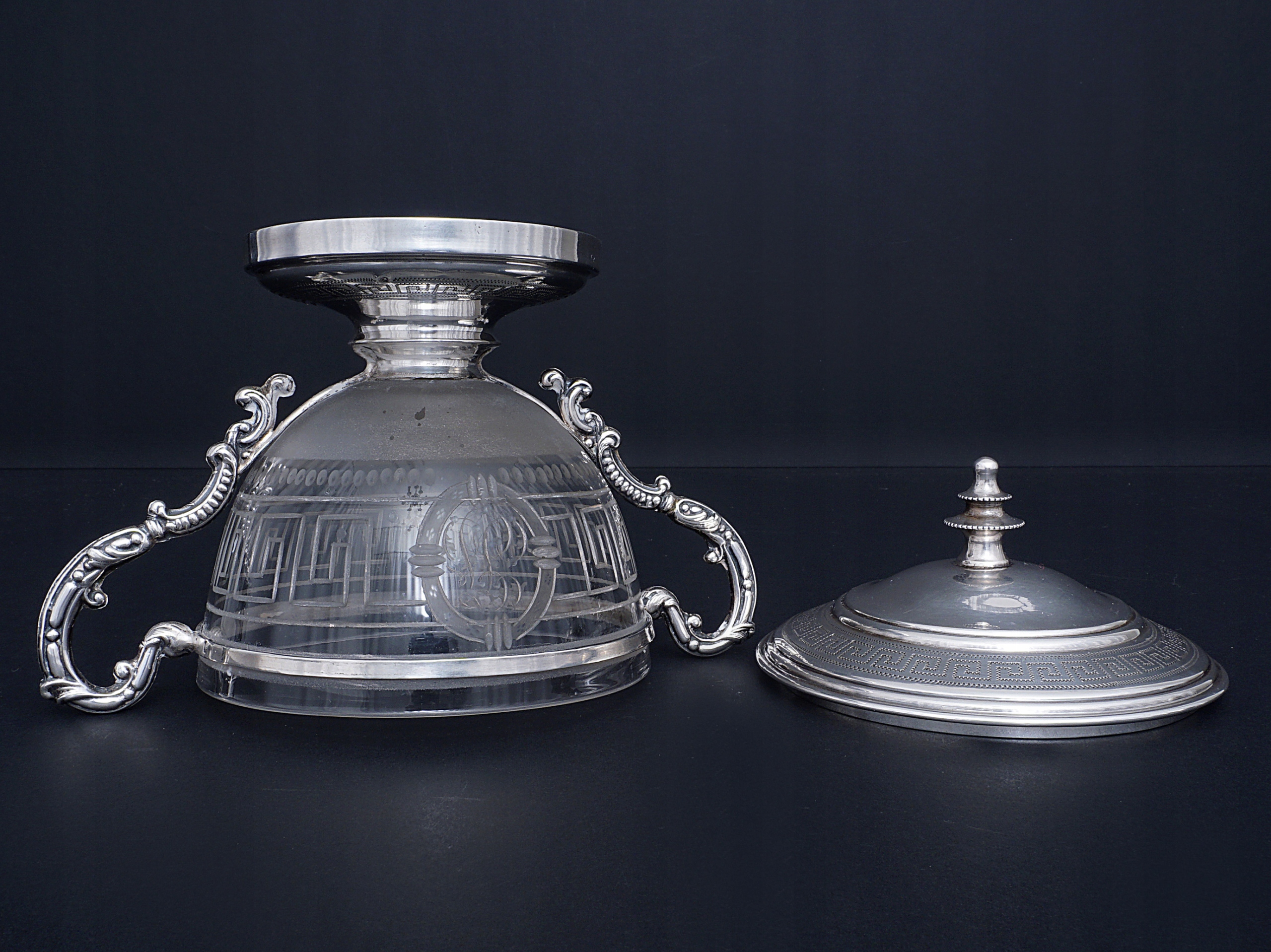 Массат Фререс 19 век – ХРУСТАЛЬНАЯ САХАРНИЦА – посеребрение