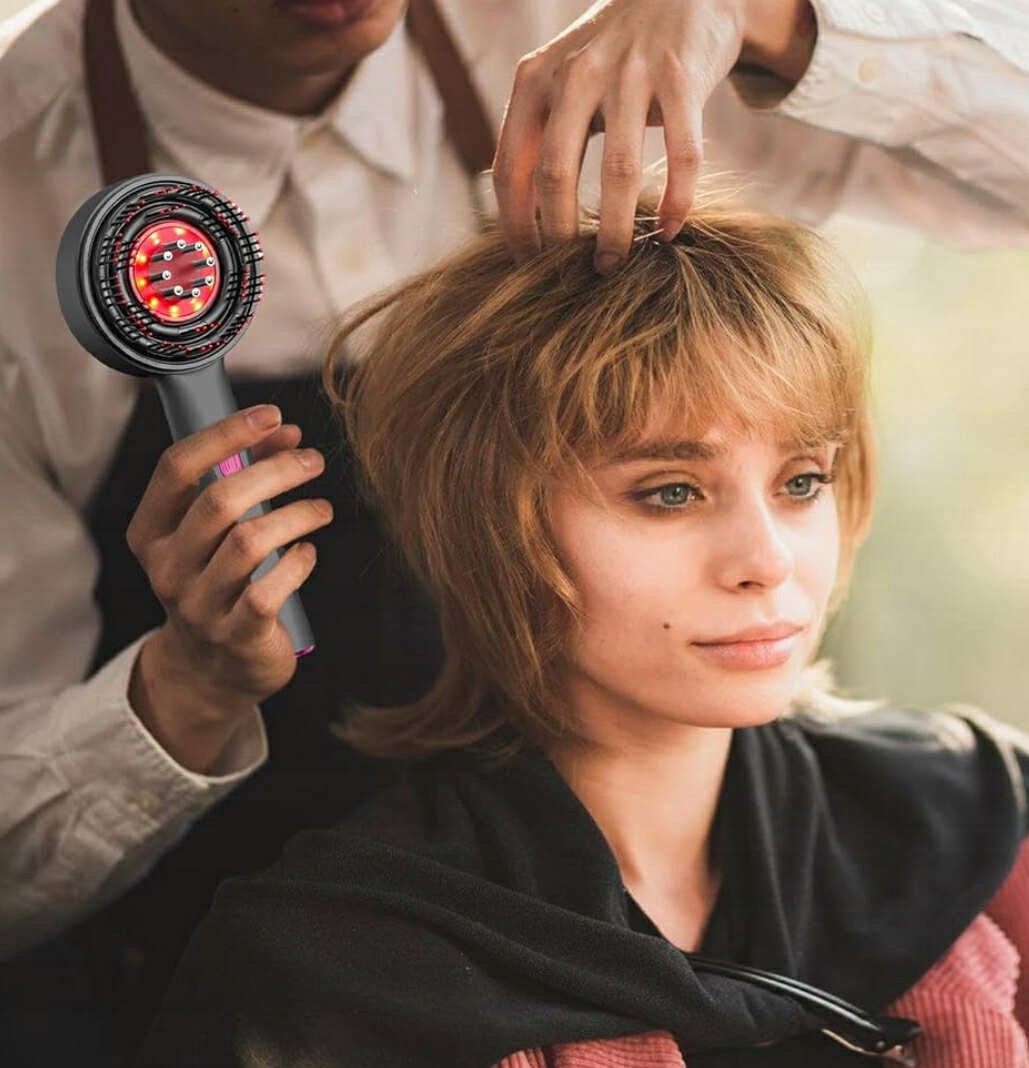Волна инфракрасного света 630 нм стимулирует волосяные фолликулы, улучшает кровоснабжение кожи и регулирует выработку кожного сала. Эффект? более здоровый кожу головы, меньше выпадения волос и более блестящие пряди.
