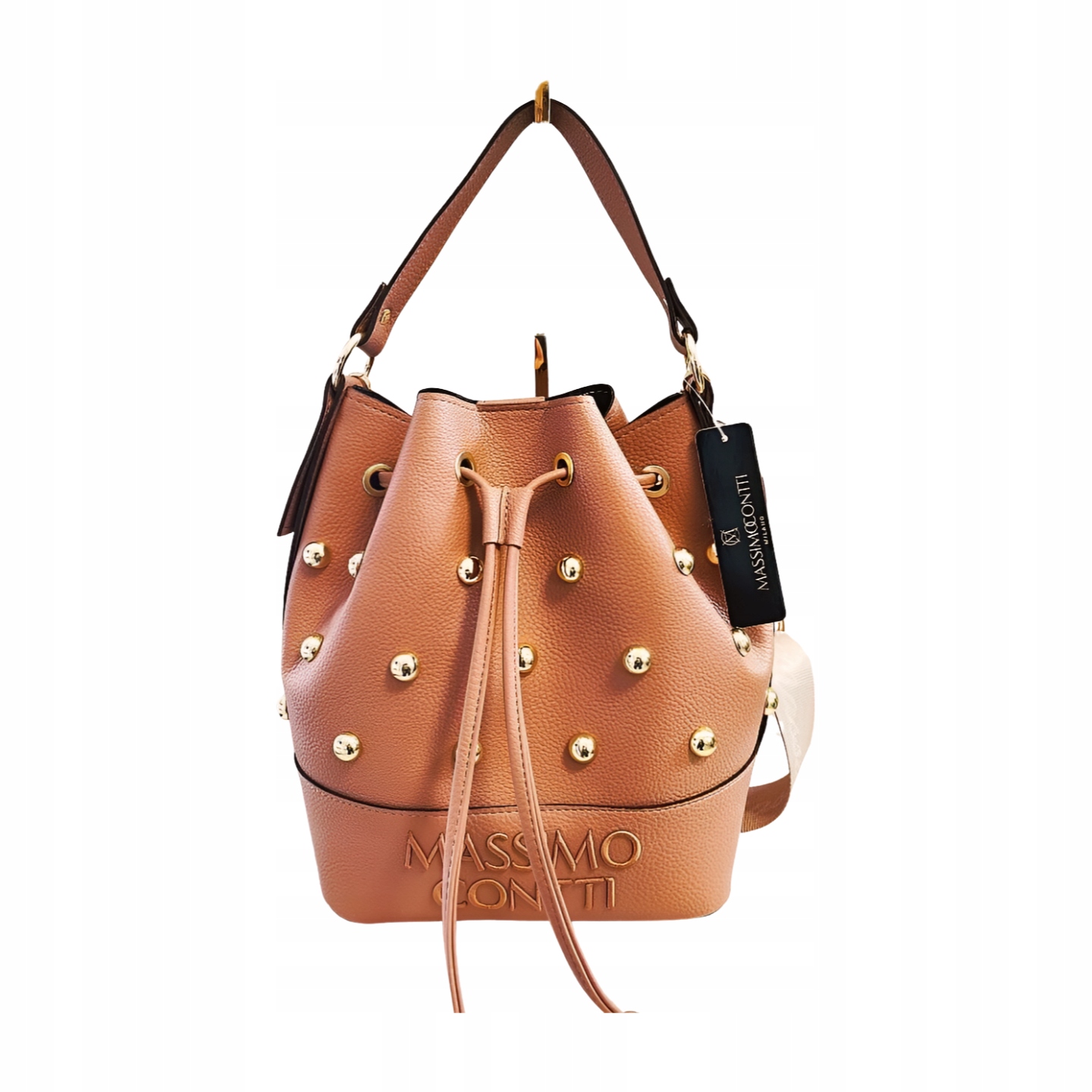 На передней видимой вышитой надписи с именем бренда Massimo contti и золотых колец. Проходит для загрузки интерьера сумки.