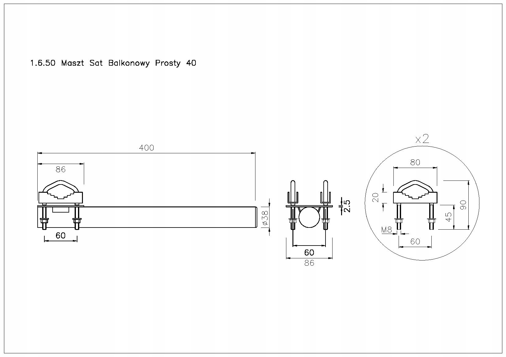 Мачта -телевизионная ручка SAT Ручка с балконом прямо 40 см.