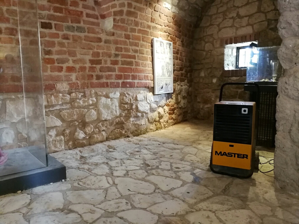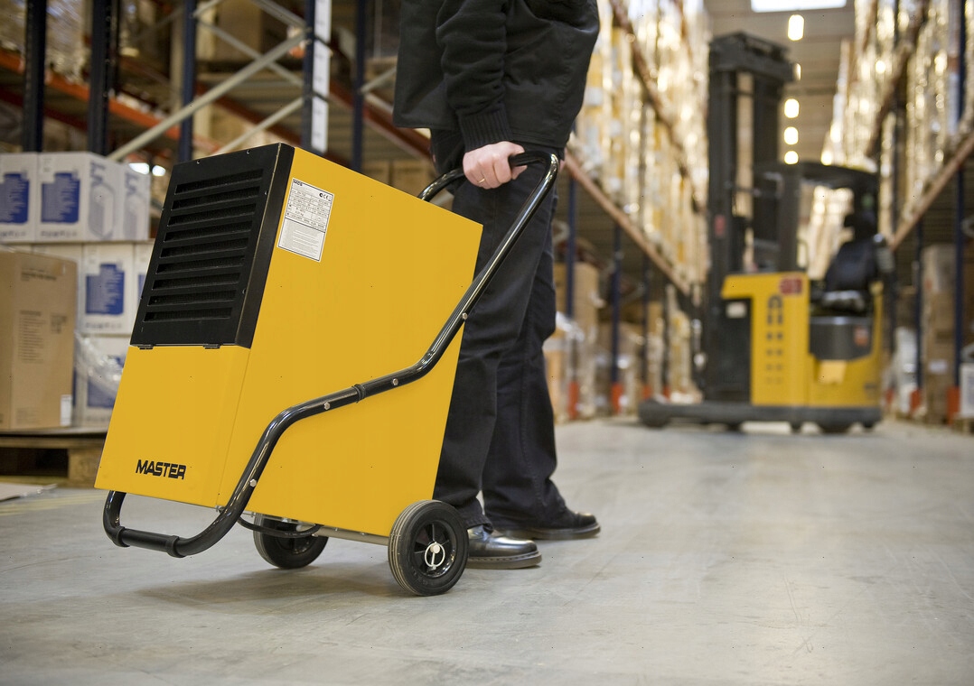 Master DH 752 P осуществляет осушение влаги методом конденсации. Что это такое: встроенный в устройство вентилятор пропускает забранный из помещения влажный воздух через установленный в устройстве испаритель, понижая его температуру ниже точки росы. Излишки водяного пара выбрасываются в воздух в виде конденсата и собираются в контейнере. После прогревания до комнатной температуры воздух, лишенный лишней влаги, затем снова выпускается наружу. Конденсационное осушение определенно более эффективно и экономично, чем осушение путем отопления и вентиляции, прежде всего за счет исключения воздухообмена внутри помещения.
