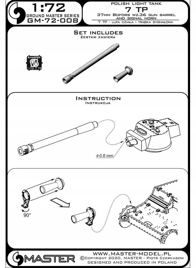Мастер GM-72-008 1/72 7tp-lufa 37 мм Bofors WZ. 36 и Клаксон