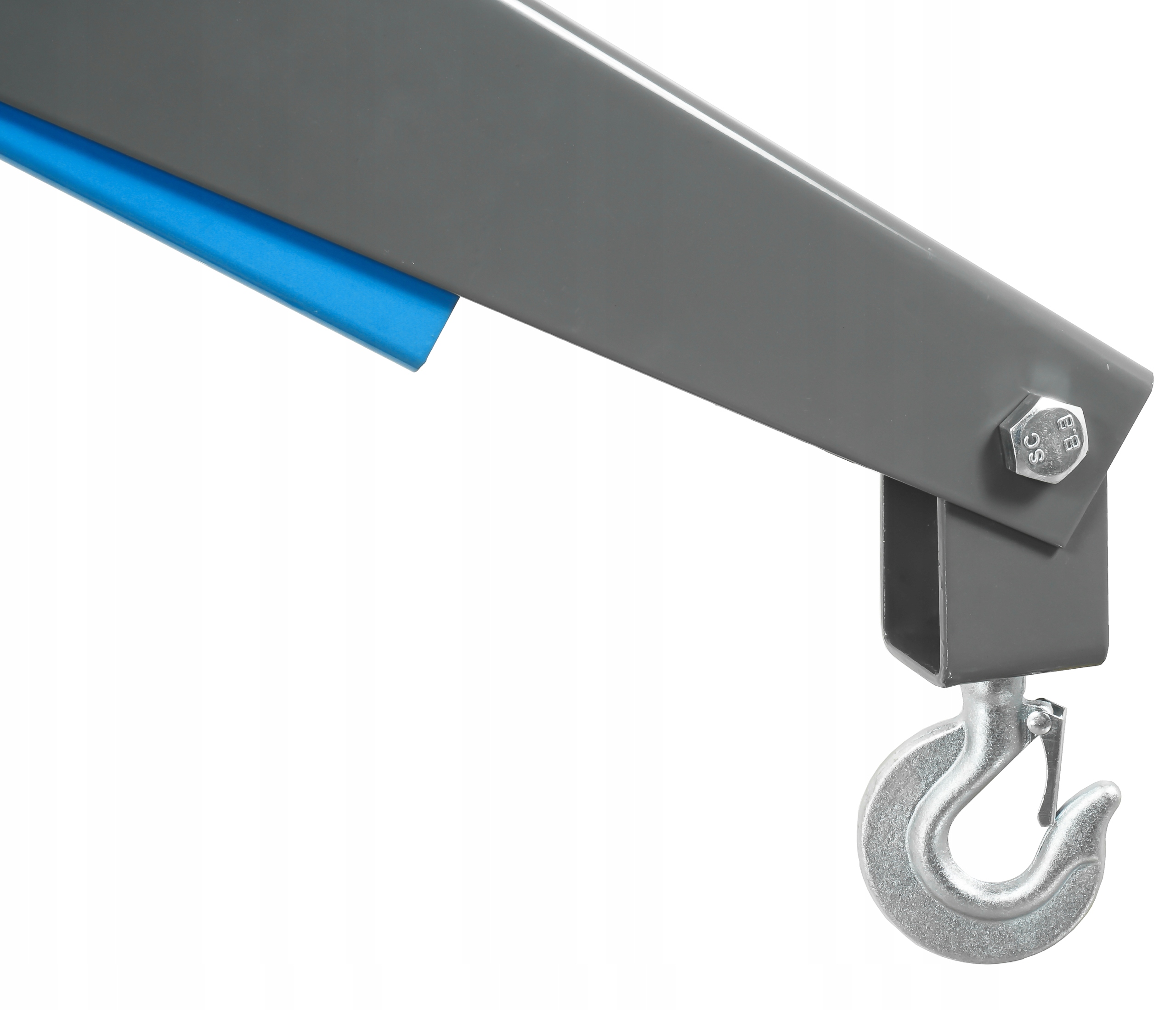 Подъемник имеет устойчивую конструкцию. Изготовлен из стального листа и оснащен гидравлическим цилиндром, который поднимает стрелу за счет ручной накачки, что позволяет точно поднимать и переносить все виды предметов массой до 1 тонны