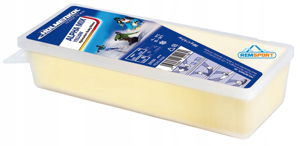 Предложение магазина REMSPORT: Базовая смазка для смазки горных лыж, беговых лыж и сноубордов, продукт немецкой компании HOLMENKOL, это модель Alpha Mix Yellow (каталожный номер 24101), в г. кубик 150 грамм. Смазка упакована в пластиковую, маркированную и закрытую коробку.